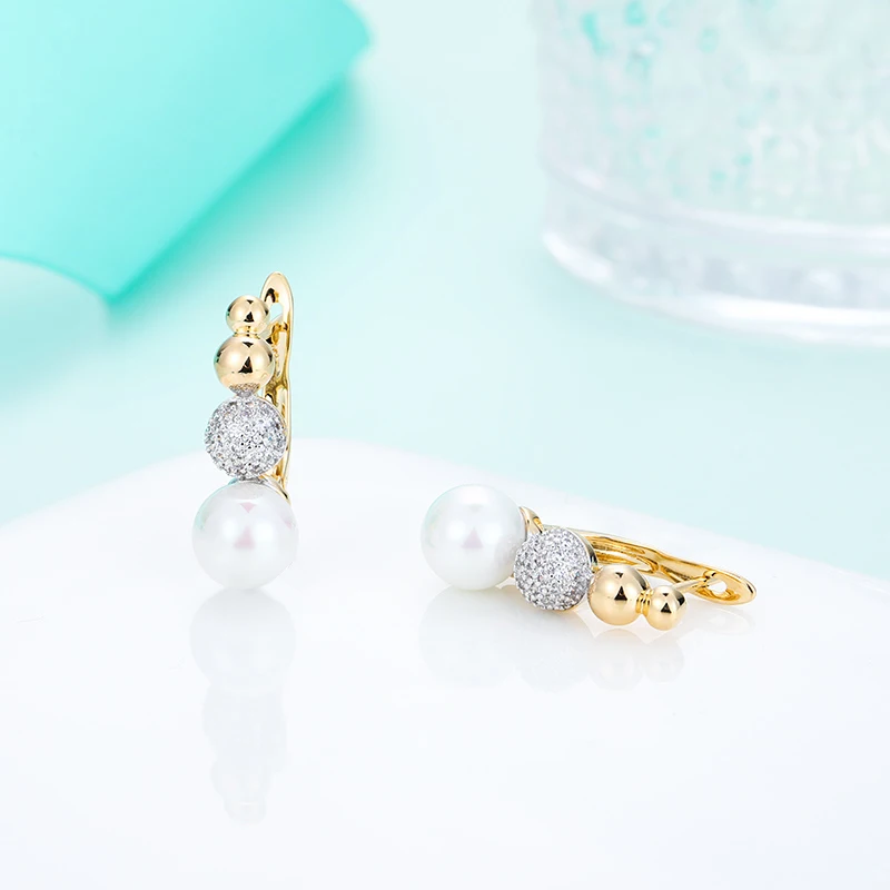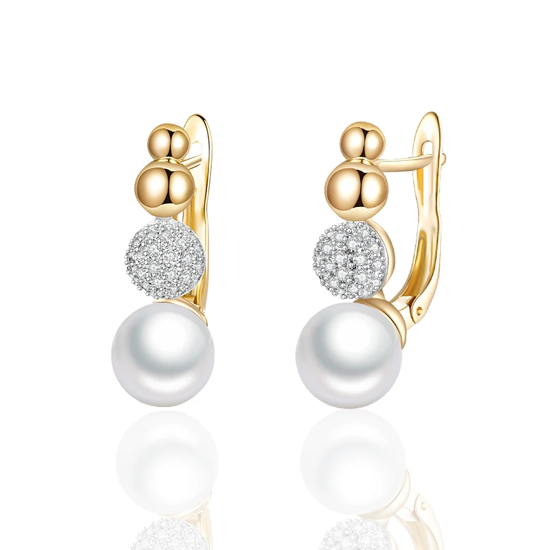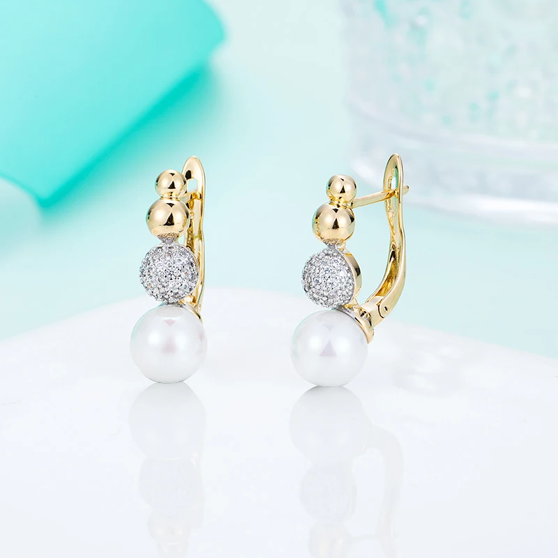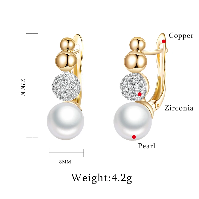 Женские золотистые серьги MAIKALE, круглые серьги с жемчугом, серьги с цирконием кубической огранки