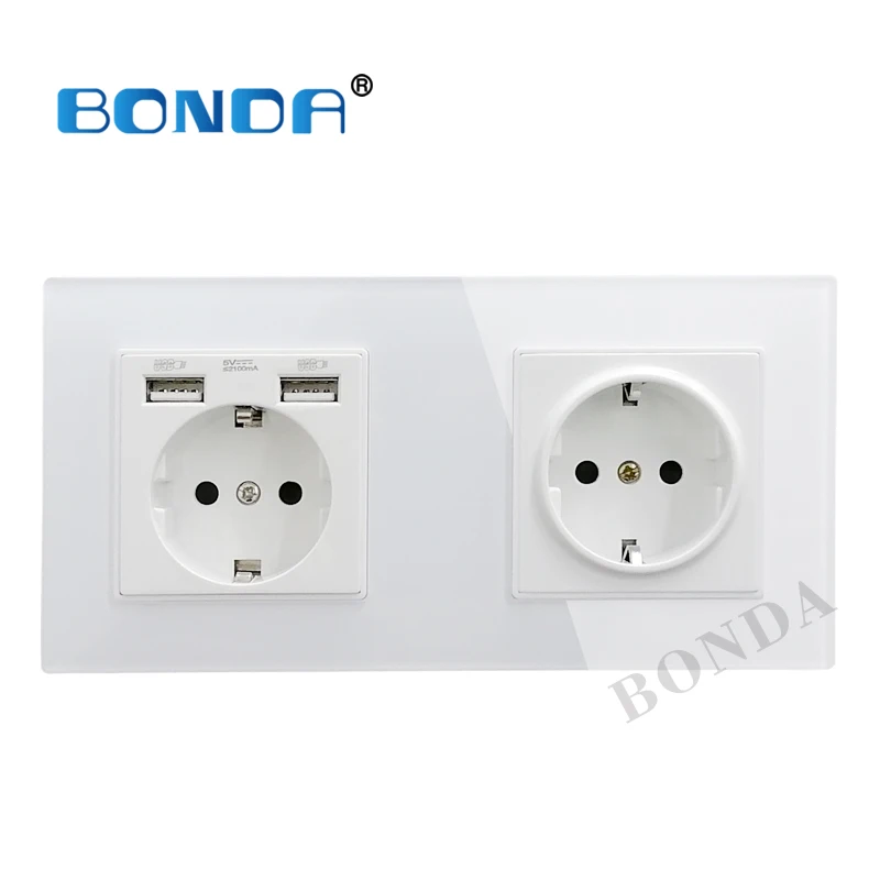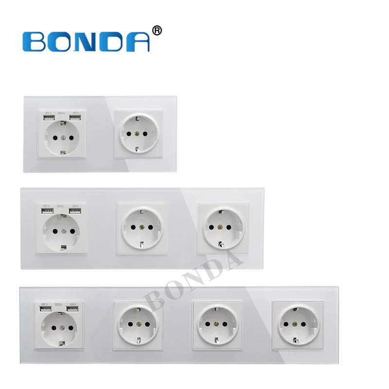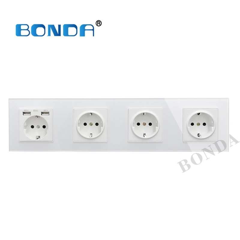 Новая розетка питания европейского стандарта 16 А с USB, панель розетки, трехслойная Розетка без вилки, искусственная стеклянная розетка из закаленного стекла