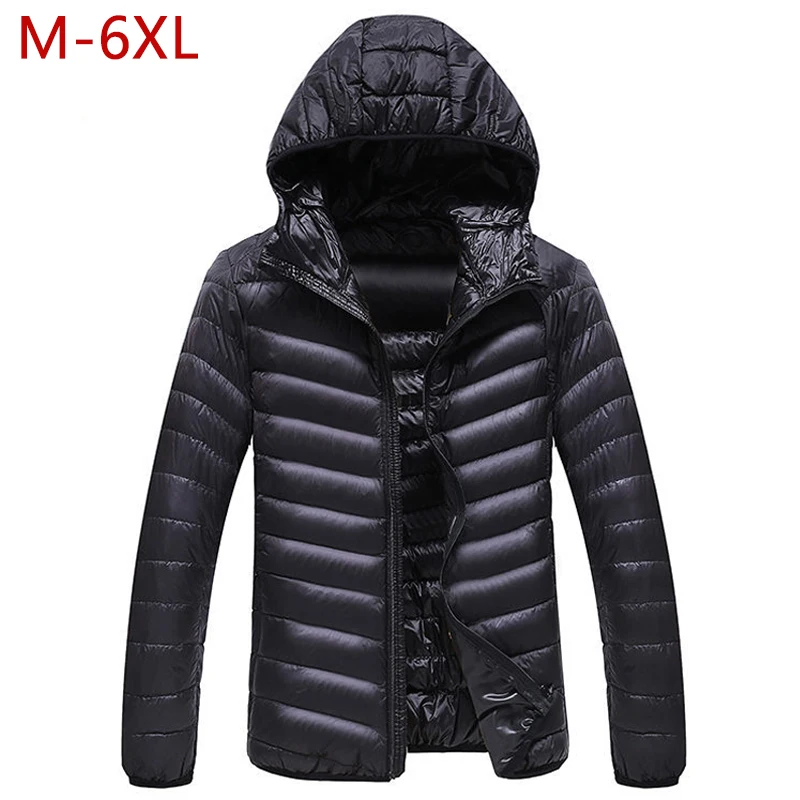 M-6XL, мужская повседневная куртка на утином пуху с капюшоном, осенне-зимняя однотонная Сверхлегкая теплая куртка, ветрозащитная одежда высокого качества