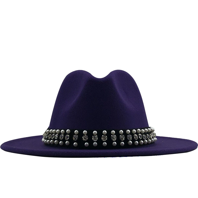 Шляпа Женская фетровая с жемчужинами, широкополая Федора для церкви...