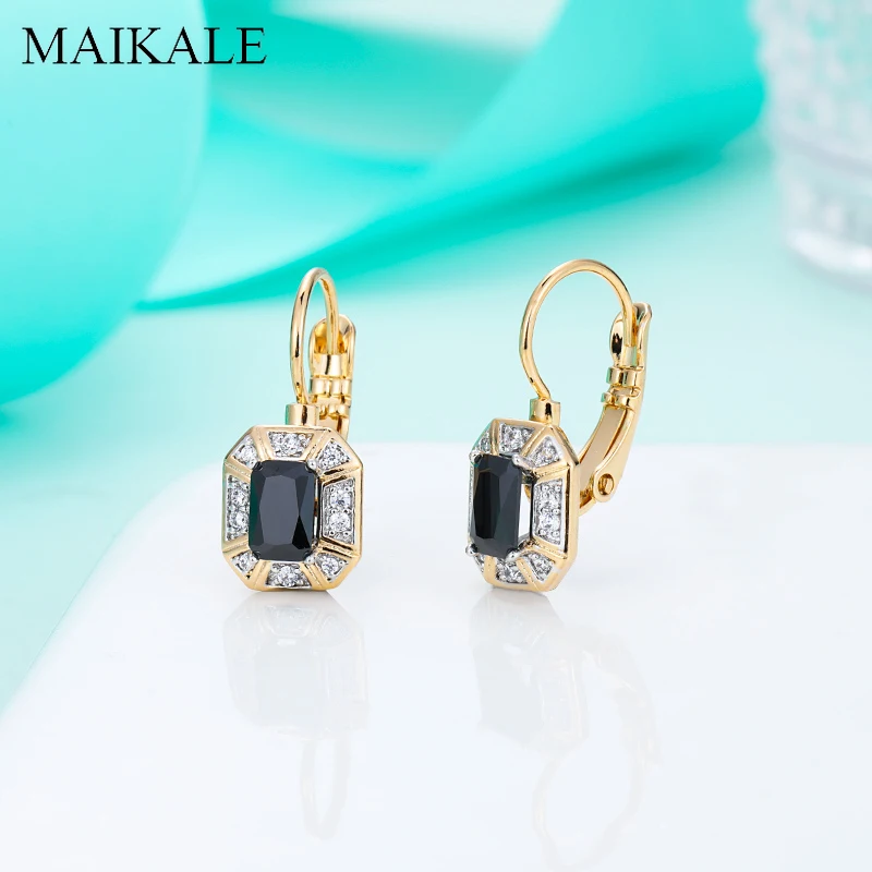Женские серьги-гвоздики MAIKALE, золотистые винтажные маленькие медные серьги с микро инкрустацией, цветные серьги-гвоздики с кубическим цирконием, ювелирные изделия, милый подарок