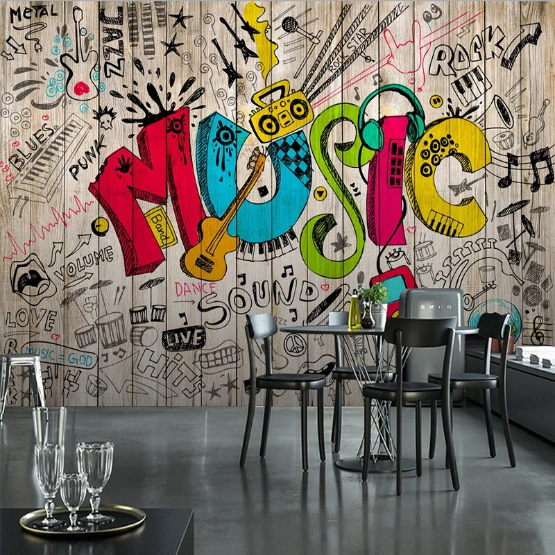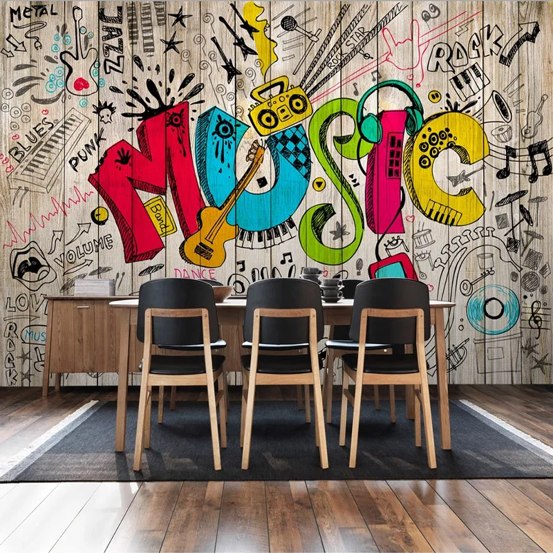 Индивидуальная фотография, ретро Ностальгический деревянный зерна, креативная личность, уличные граффити, музыка, ресторан, кафе, бар, 3D настенная бумага