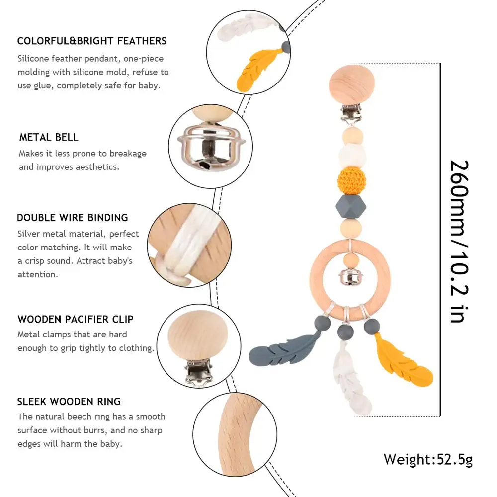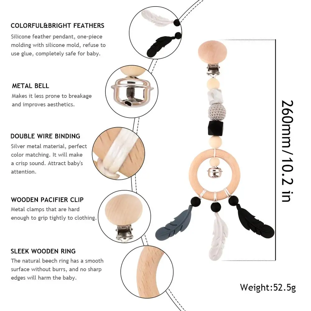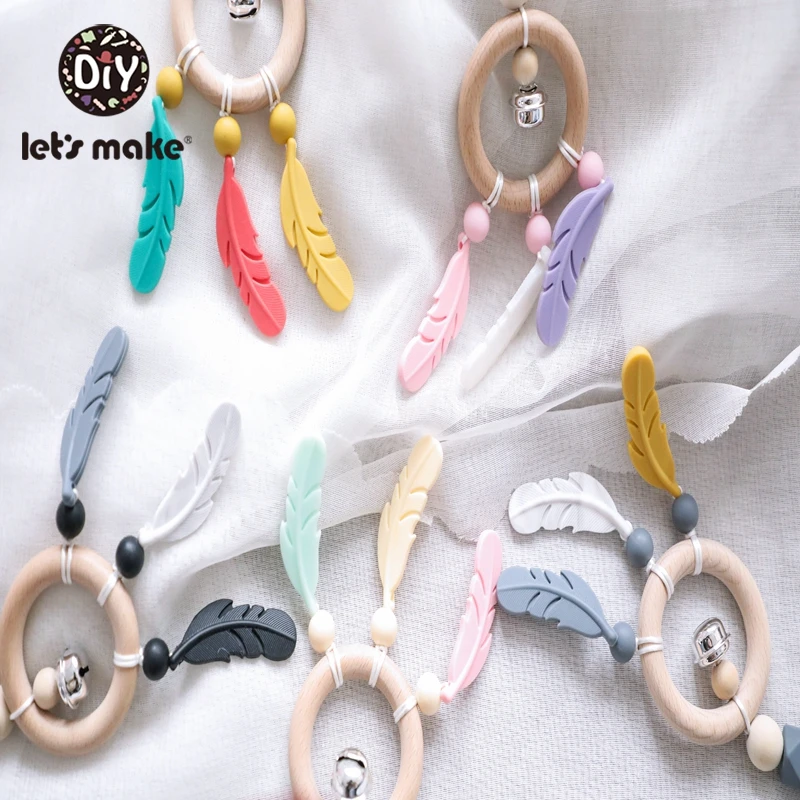 1 шт. детский Прорезыватель для зубов с бусинами из силикона, перо,...