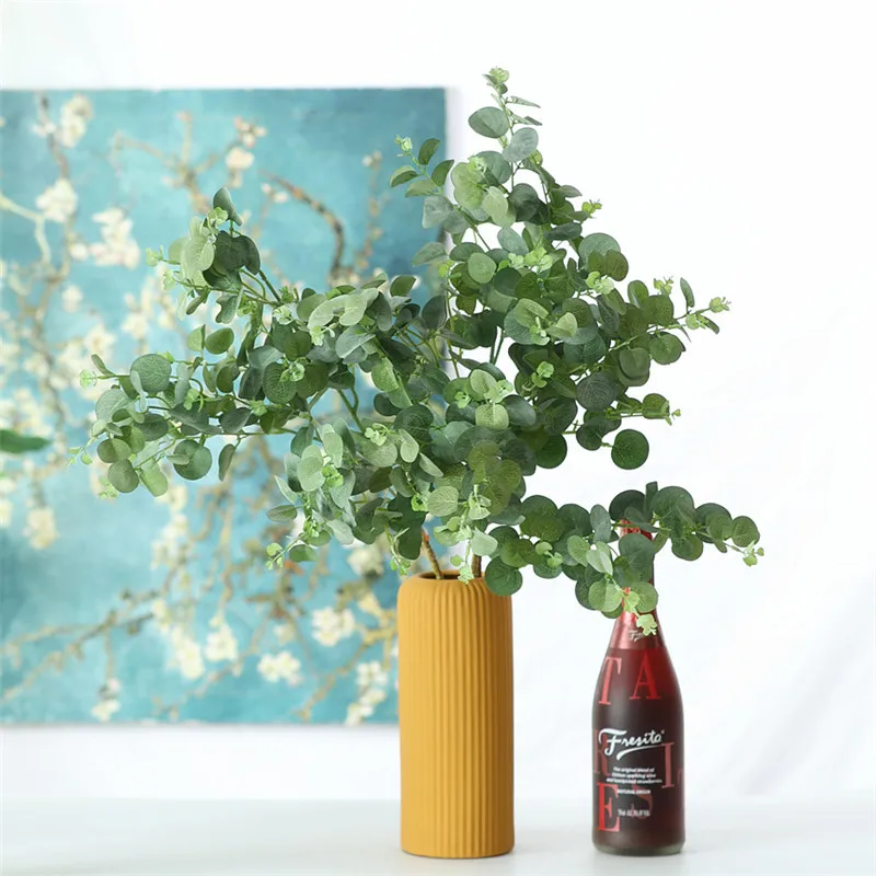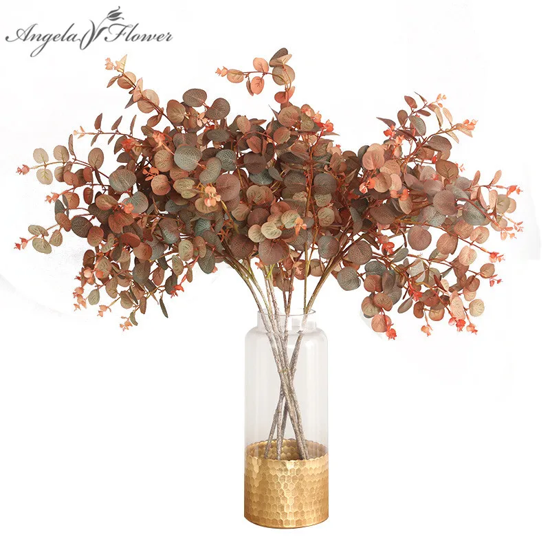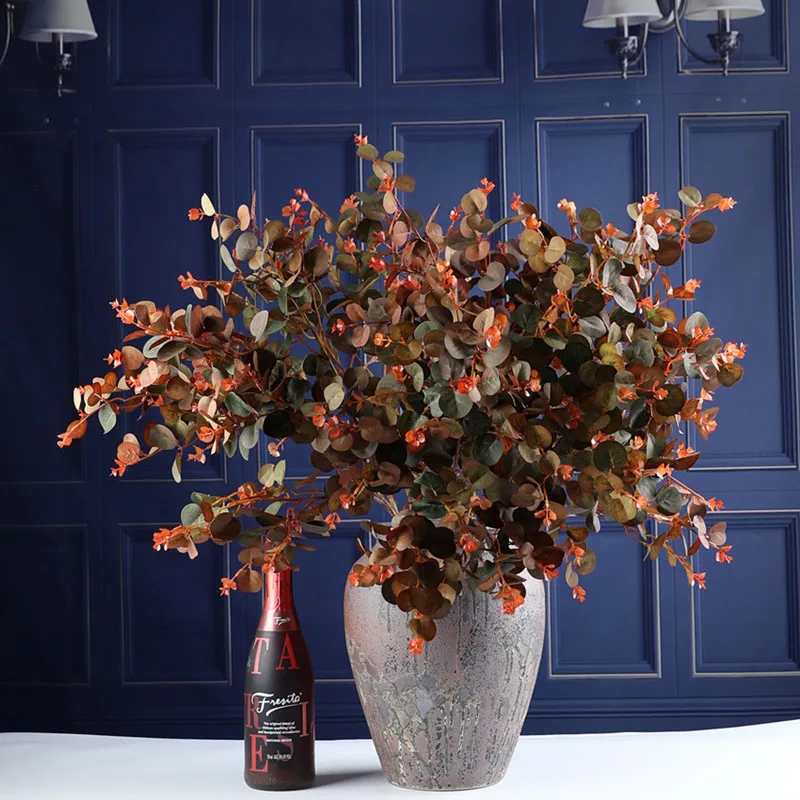 Осенний стиль лист эвкалипта для помещений имитация шелковых растений искусственные цветы ветка в горшке для дома вечерние ваза для стола цветочный стеллаж Декор
