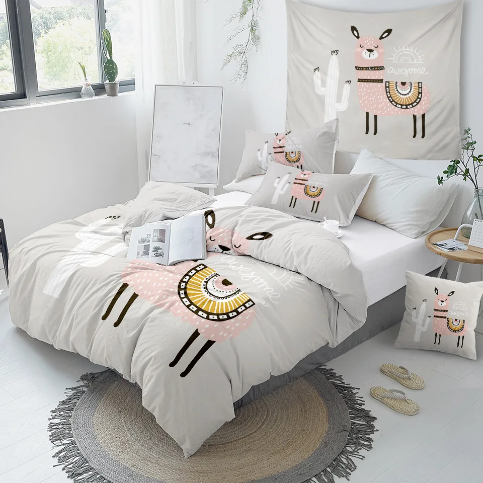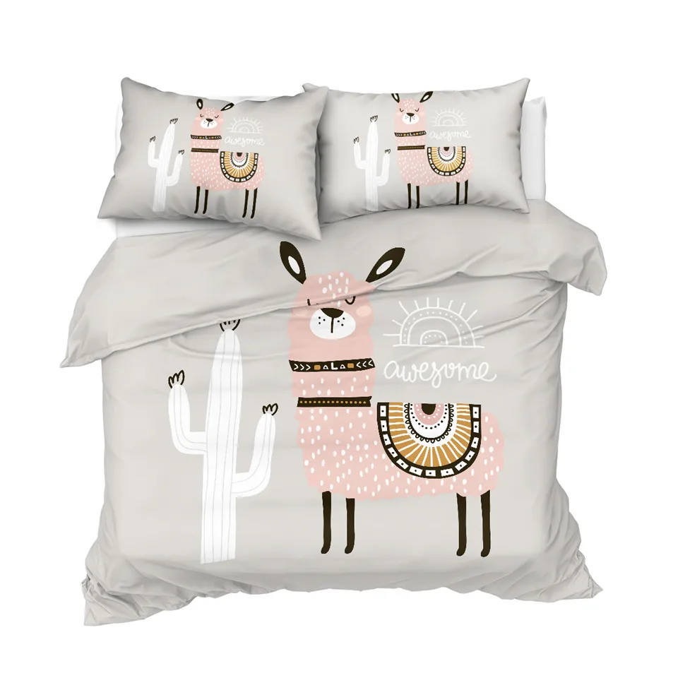 Постельное белье на выход милый лама пододеяльник в этническом стиле комплект постельного белья кактус домашний текстиль Мультфильм Альпака Серый Покрывало для кровати для детей