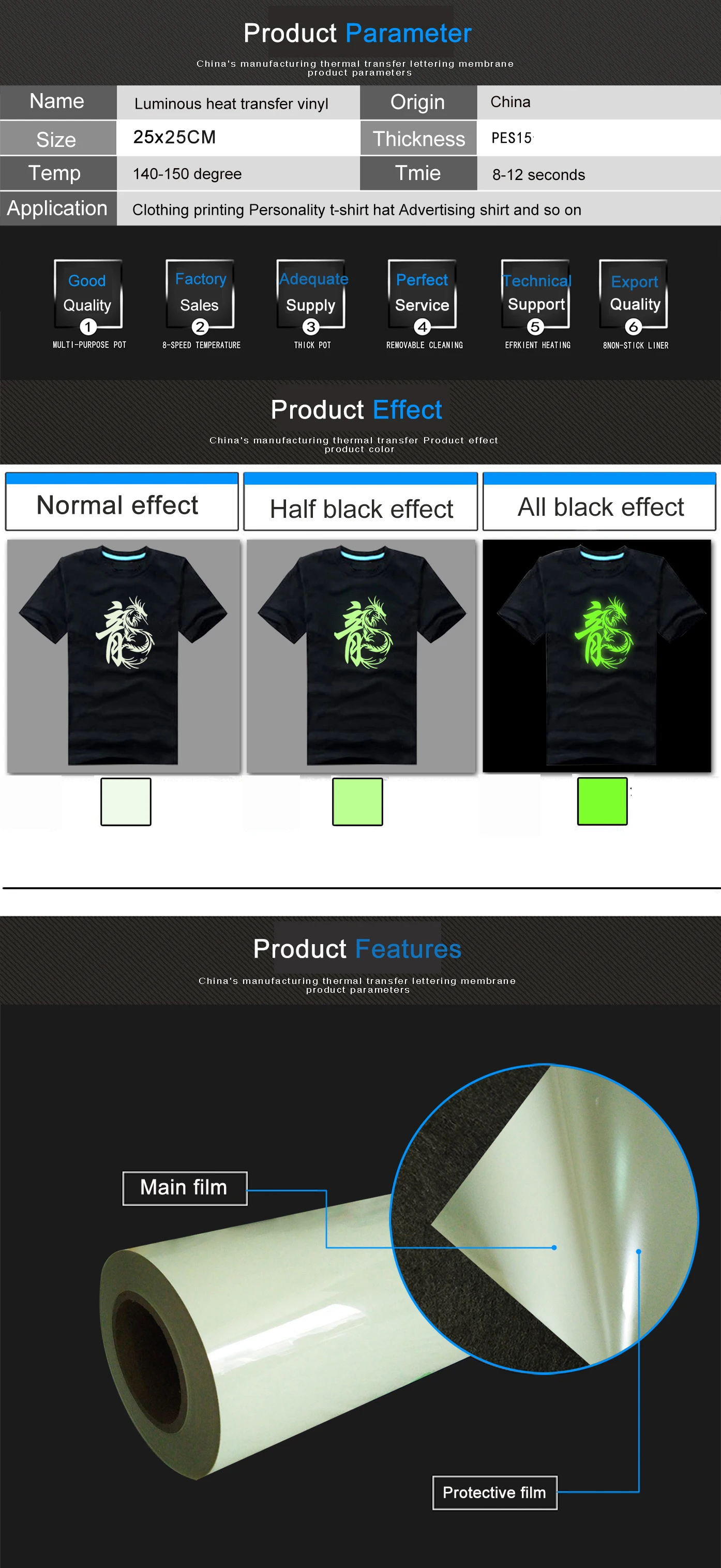 Бесплатная доставка, 1 лист, 25 см x 25 см, светящаяся Термотрансферная виниловая светящаяся в темноте термопресс для футболок