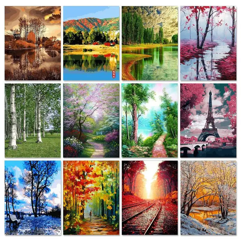 Four Seasons декорации DIY картина по номерам на холсте маслом карт...