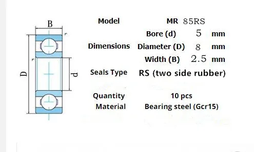 Страна: DE Outer Diameter: MR85RS 5x8x2.5mm Доставка: Cainiao Super Economy Global 07.10.2020