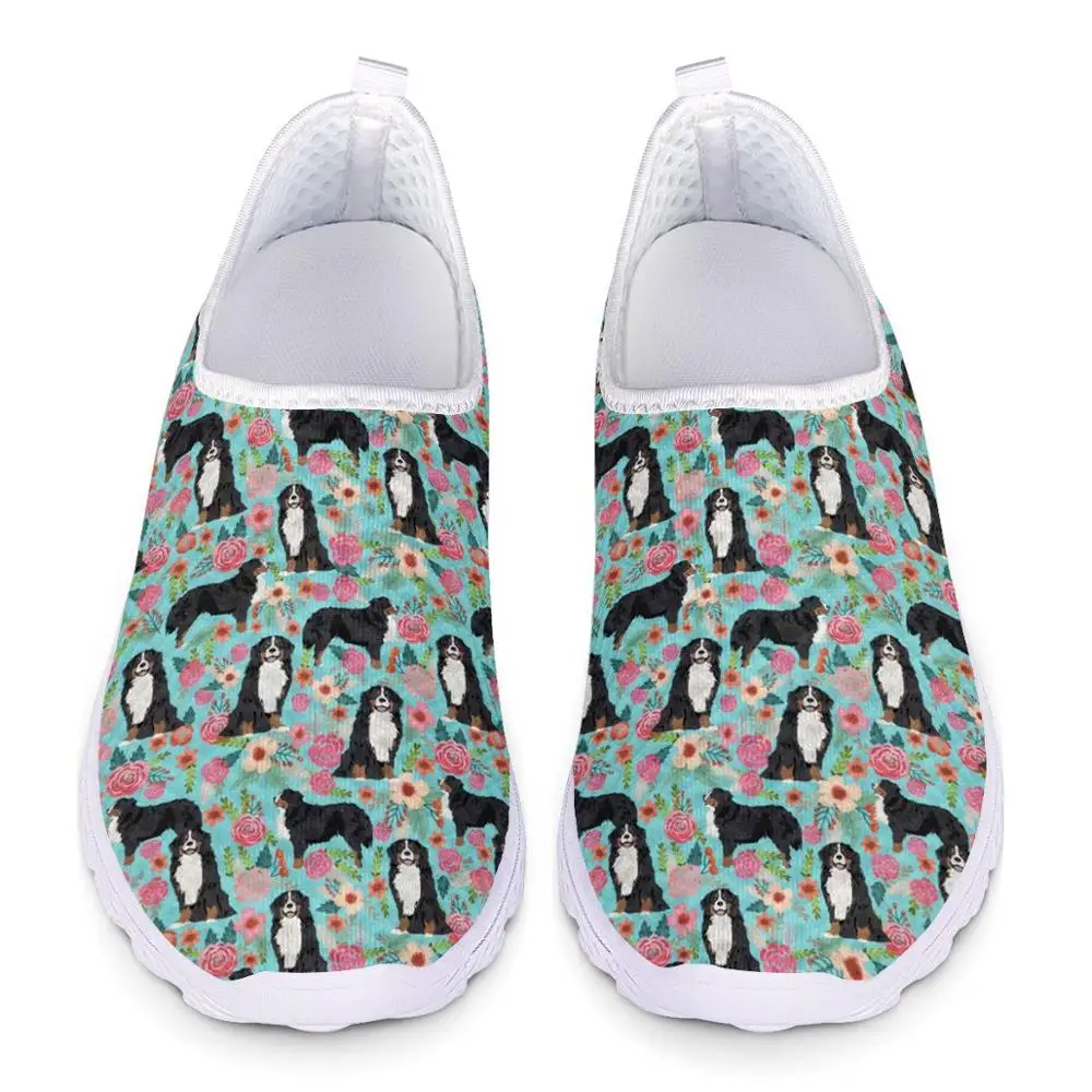 Женские кроссовки без шнуровки Nopersonality, летняя повседневная обувь на плоской подошве с принтом бернских горных собак, дышащая женская сетчатая обувь
