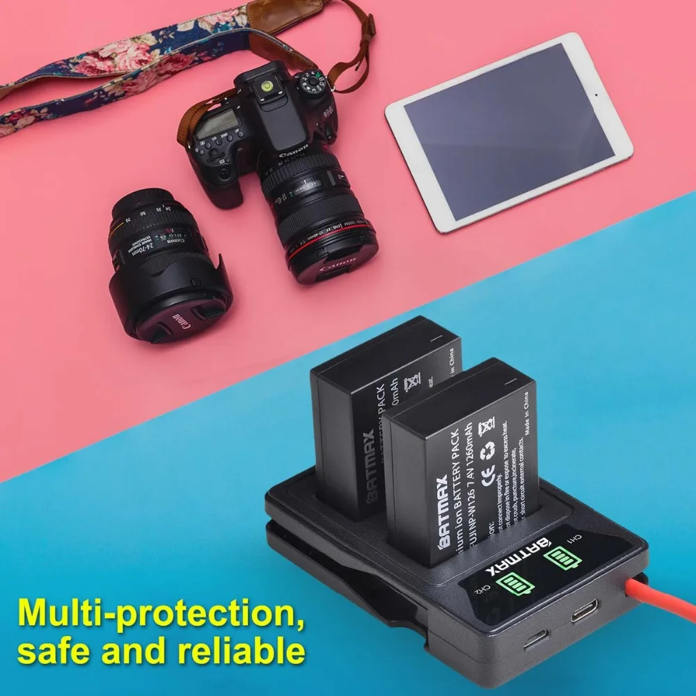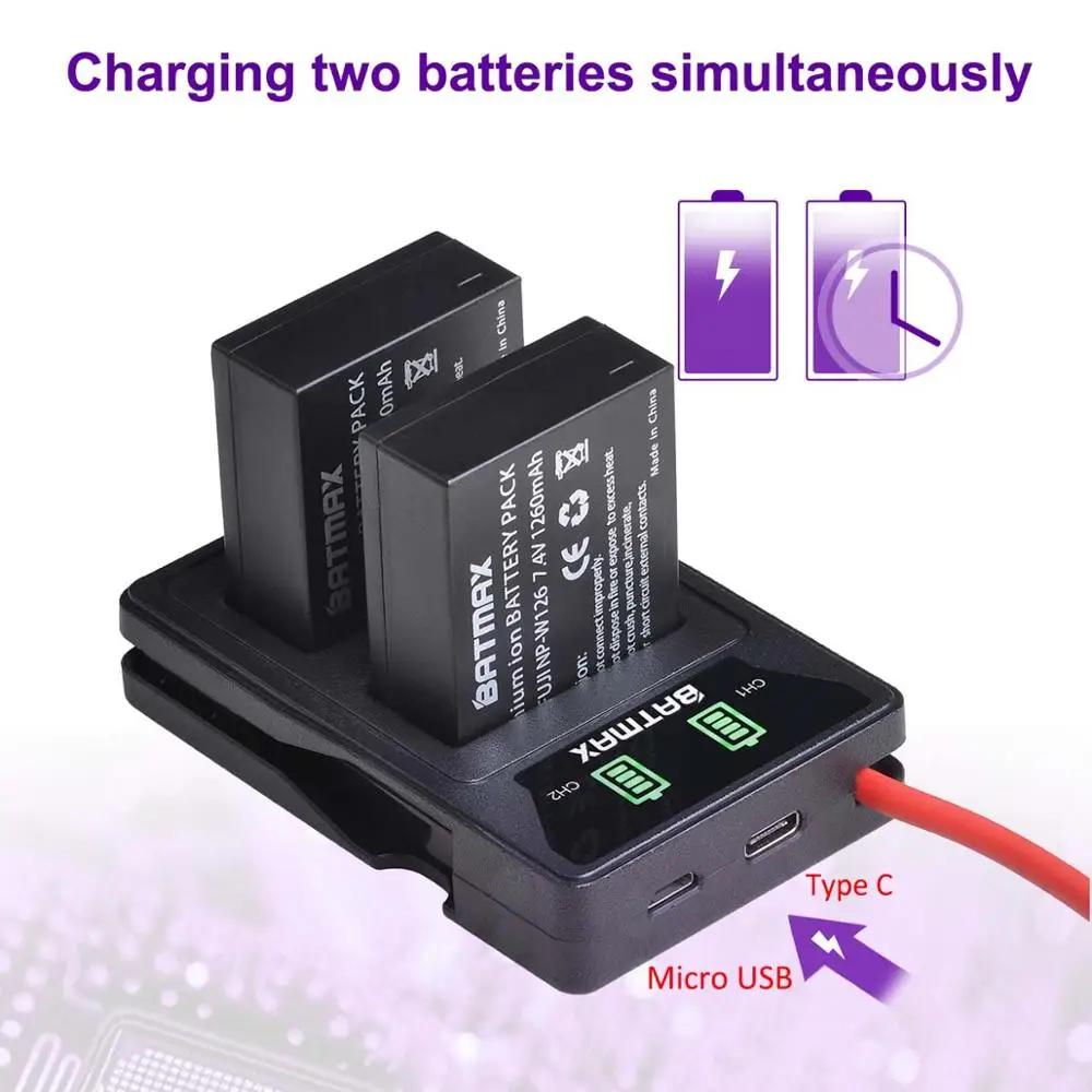 Аккумулятор Batmax NP-W126 NP-W126S со светодиодной подсветкой, двойное зарядное устройство USB и порт Type C для Fujifilm HS30EXR HS33EXR X-Pro1 X-E1 X-E2 X-A1 X-A2 X-T20