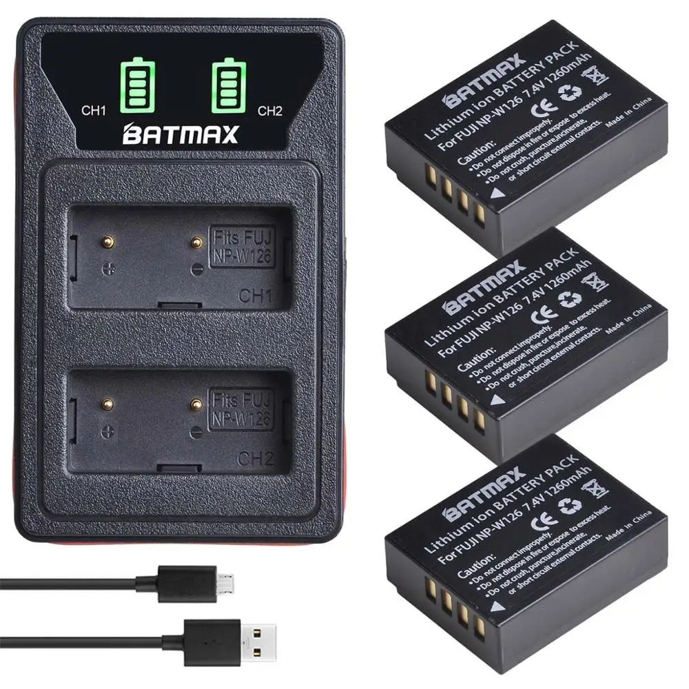 Аккумулятор Batmax NP-W126 NP W126 NPW126 + новое светодиодное двойное зарядное устройство USB с USB-кабелем и портом типа C для цифровой камеры Fujifilm FinePix HS30EXR HS33EXR X-Pro1 X-E1 X-E2 X-M1 X-A1 X-A2 X-T1 X-T10 аккумулятор с USB-кабелем