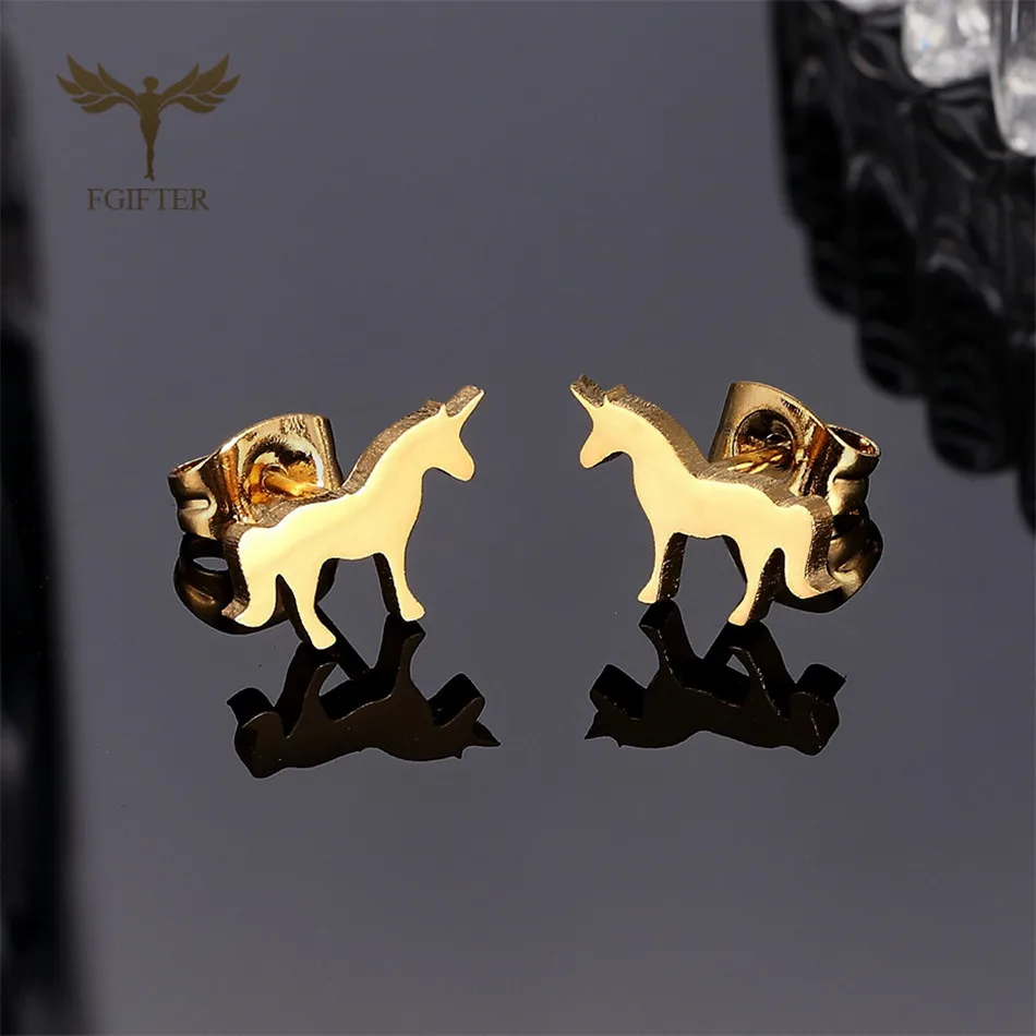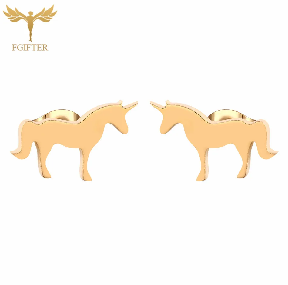 Наименование: Серьги в виде ЕдинороговМатериал: нержавеющая стальВысокое качество на 100% абсолютно новыйЦвет: золотые серьги-гвоздикиПреимущество: не вызывает аллергии, не выцветает