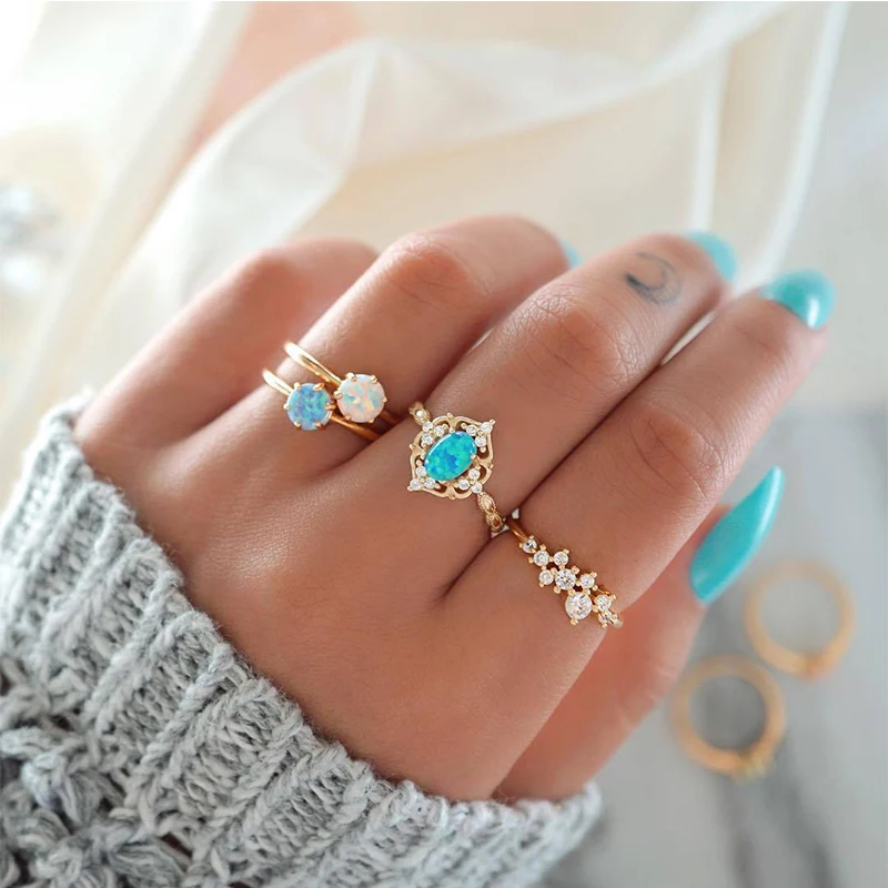 Tocona модное богемное кольцо с опалом для женщин и мужчин в стиле бохо очаровательное свадебное кольцо с кристаллами аксессуары 9048