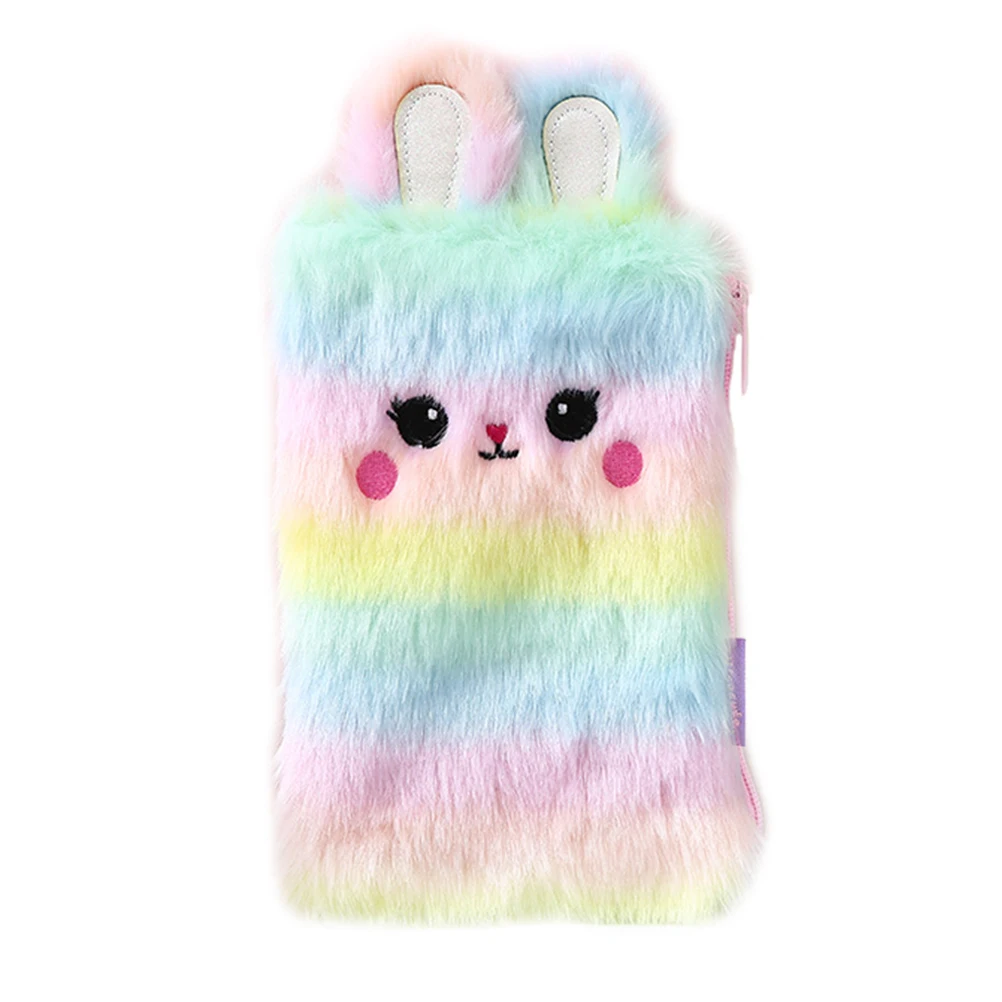 Пенал плюшевый для девочек, с заячьими ушками, школьные принадлежно...