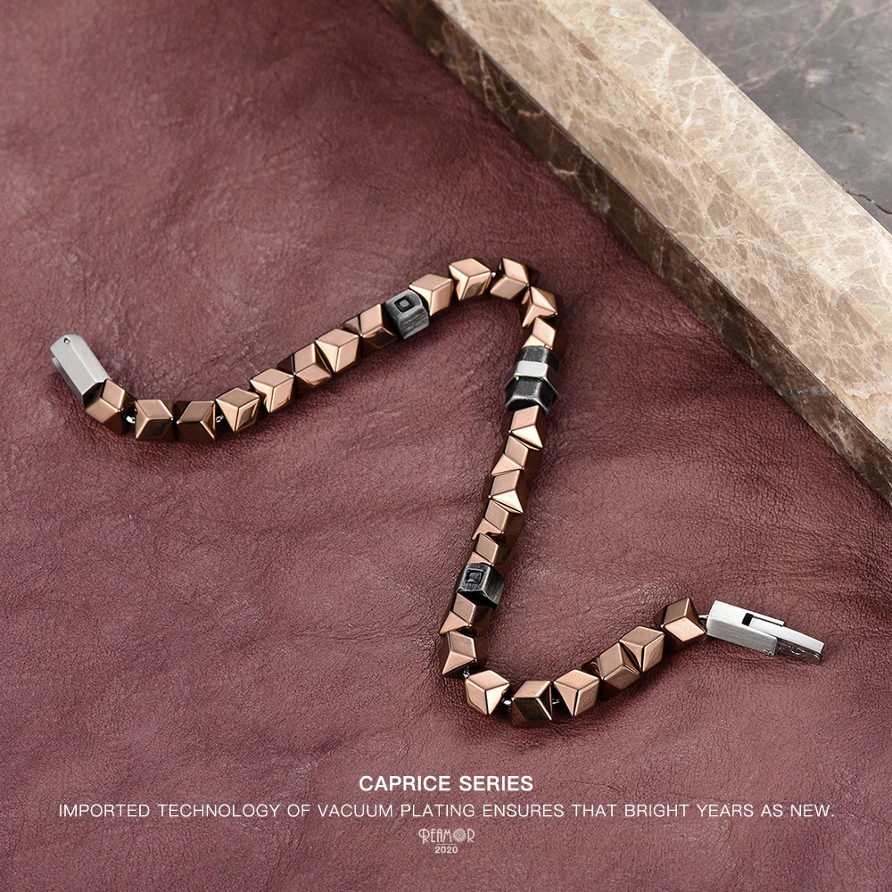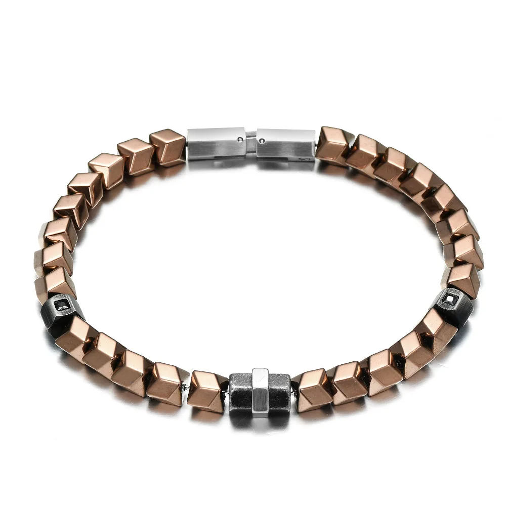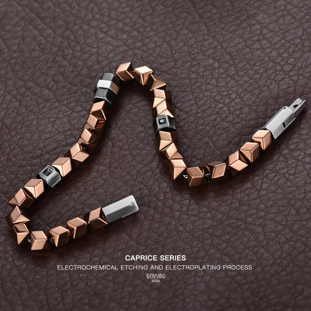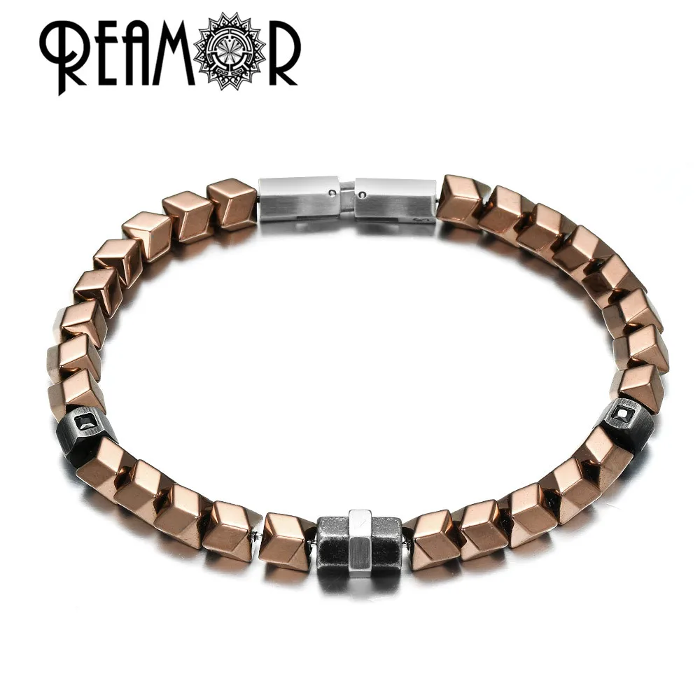 Съемный браслет REAMOR сделай сам из гематитового бусина кофейного золотого цвета, браслет из нержавеющей стали с ЧПУ с черным цирконием для мужчин и женщин, ювелирные изделия