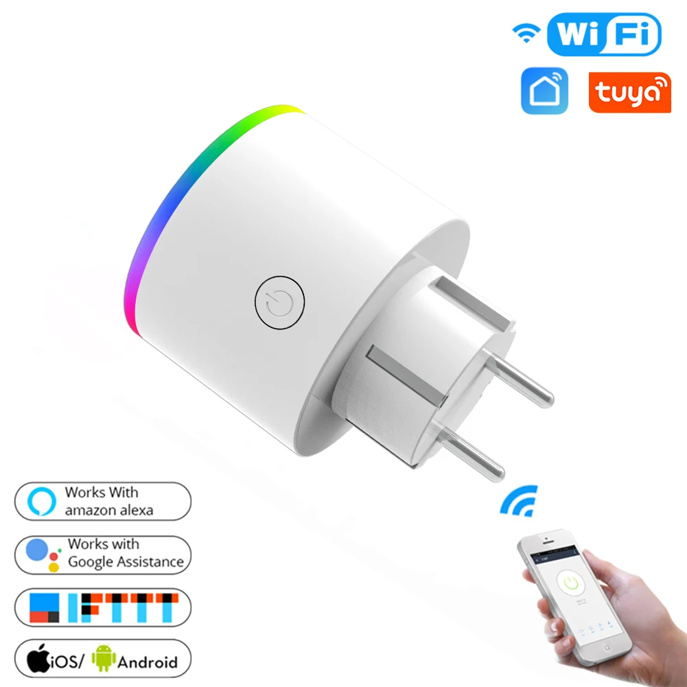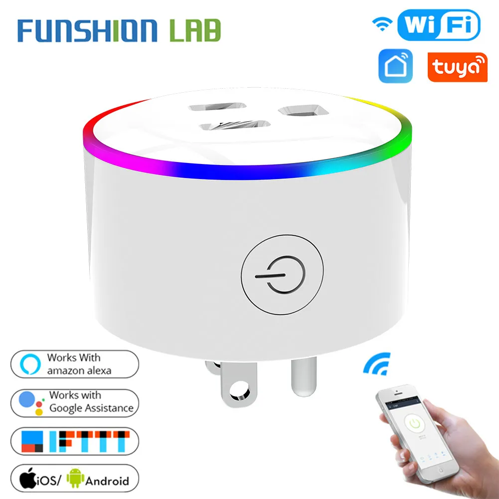 WiFi умная розетка RGB Беспроводная розетка умная жизнь/приложение Tuya дистанционное управление работа с Alexa Google Home не требуется концентратор