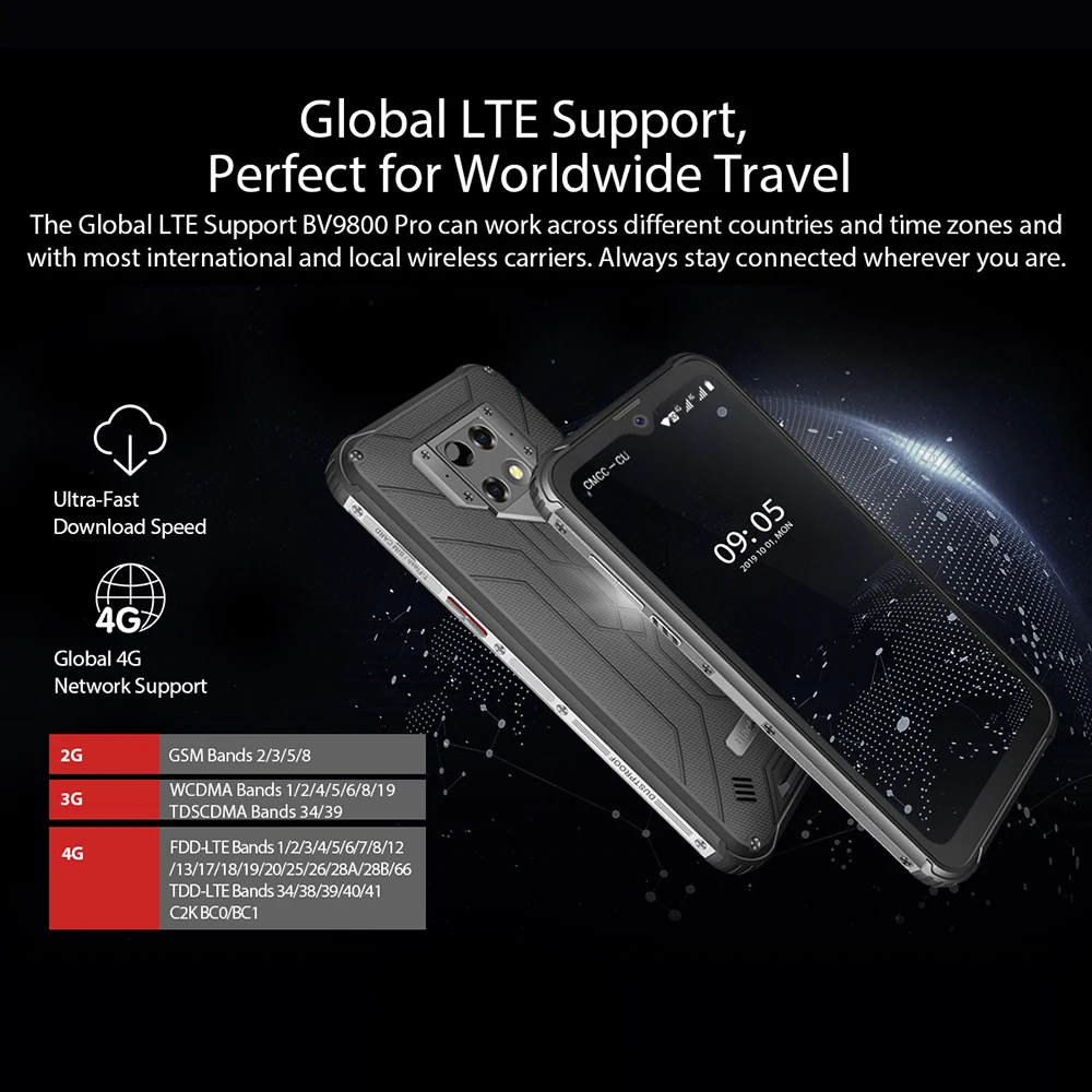Тепловизионный мобильный телефон 6 ГБ + 128 Гб Смартфон Helio P70 Android 9.0 водонепроницаемый 6580 мАч глобальная версия Blackview BV9800 Pro
