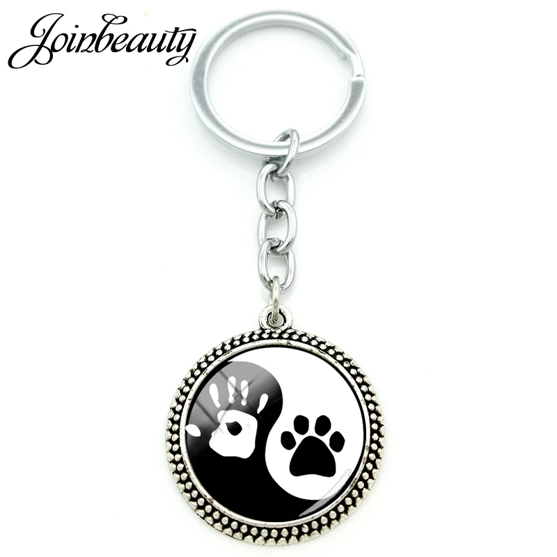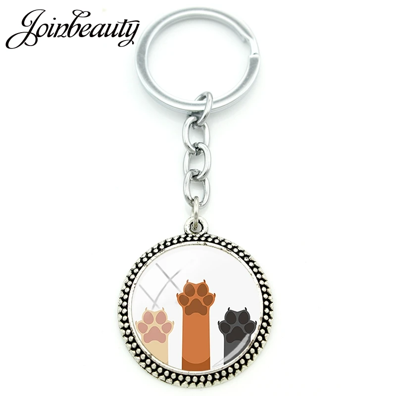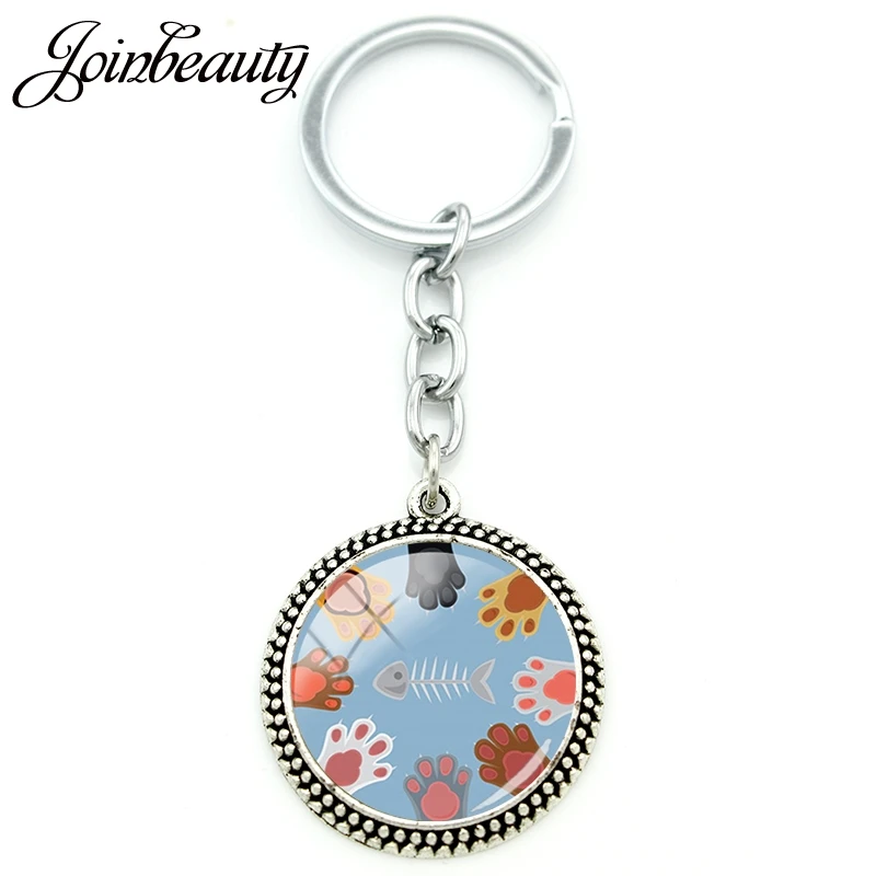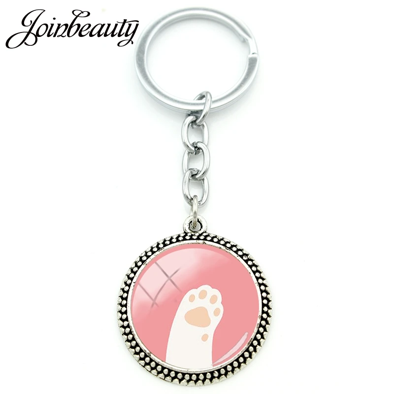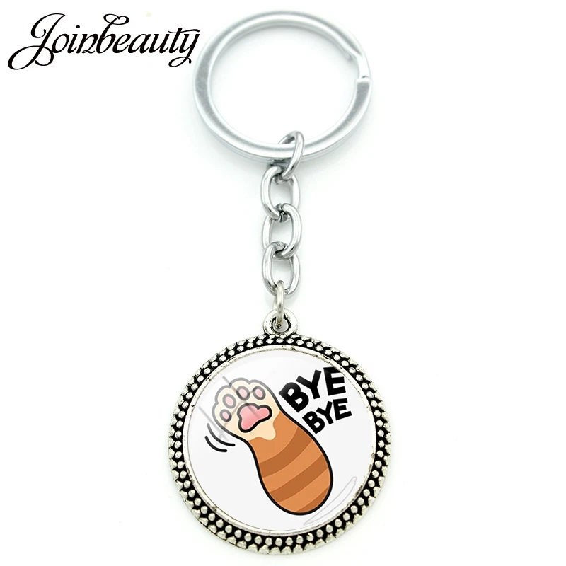 JOINBEAUTY BYEBYE Кот лапа печати прекрасный рисунок круглый кулон брелок металлическая цепочка стеклянный купол милый Шарм брелок для девушек вечерние NT329Фотографии товара: