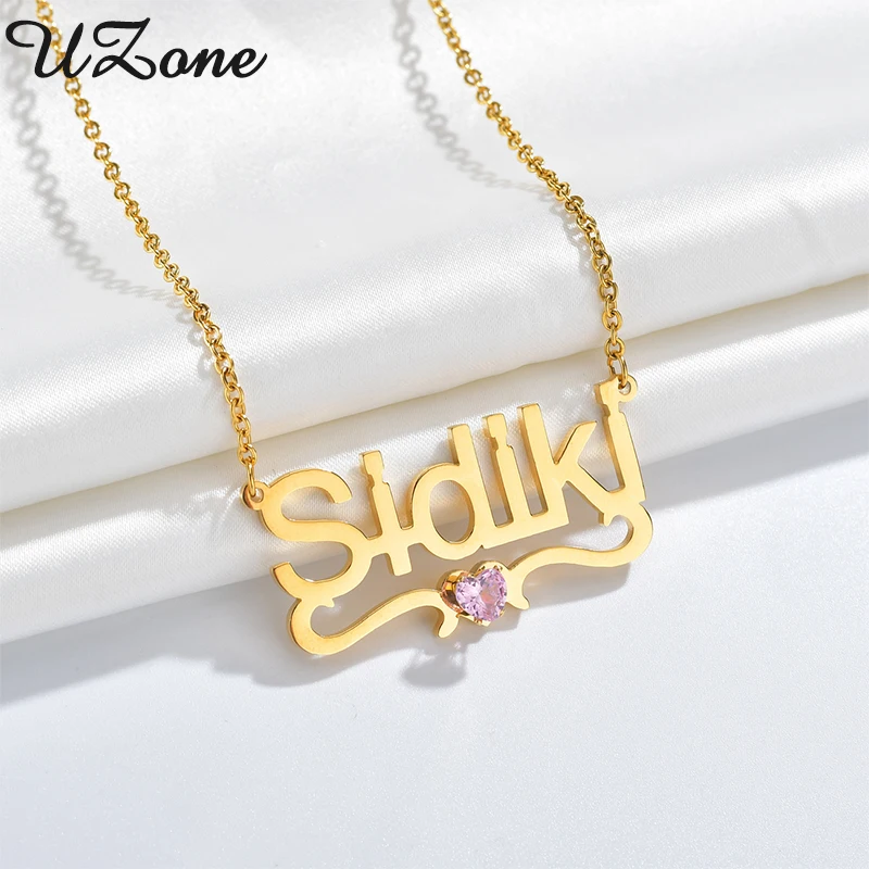 Ожерелье с табличкой UZone стразы из нержавеющей стали CZ персонализированные именные ожерелья для женщин и девочек Подарки на день рождения оптом