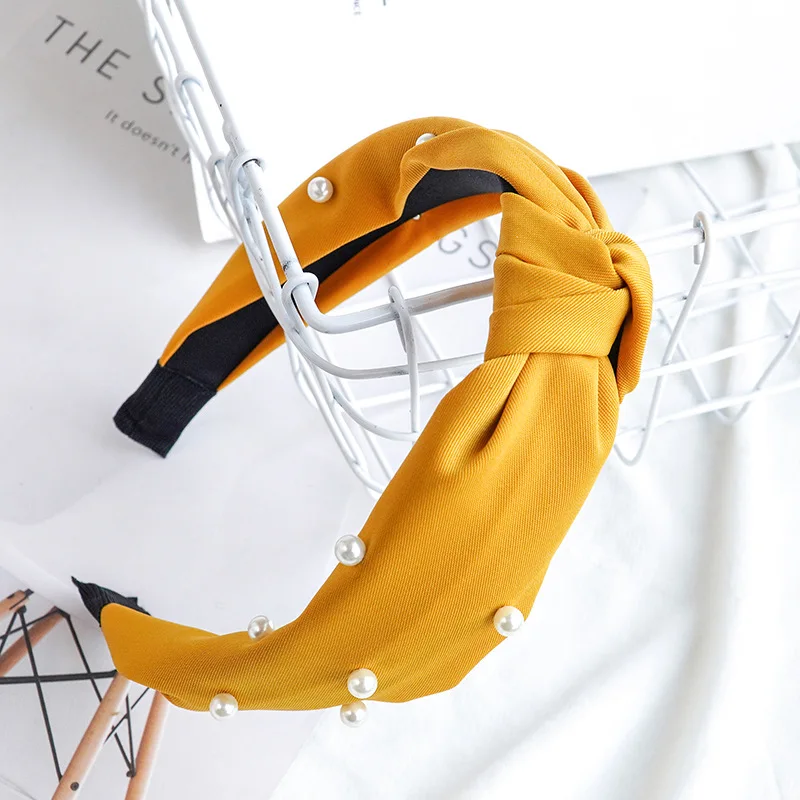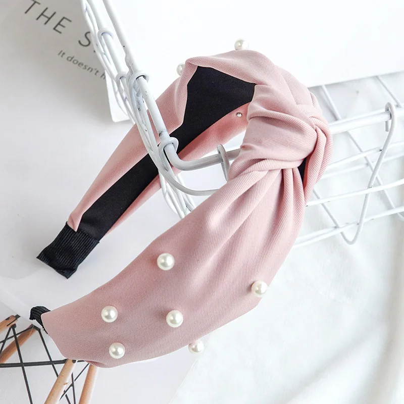 Ободок для волос Женский, однотонный, из хлопка, с жемчужинами, DSFG05