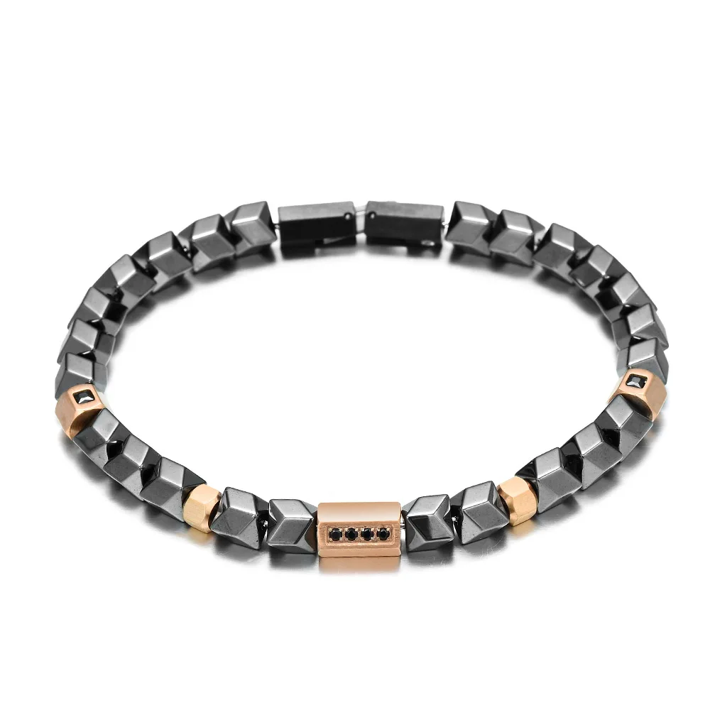 Браслеты REAMOR из гематита, полированные, с геометрическими фигурами, цвета розового золота, с ЧПУ, из нержавеющей стали
