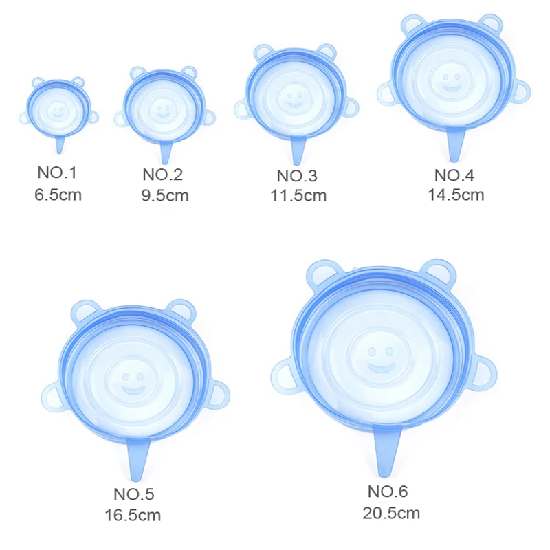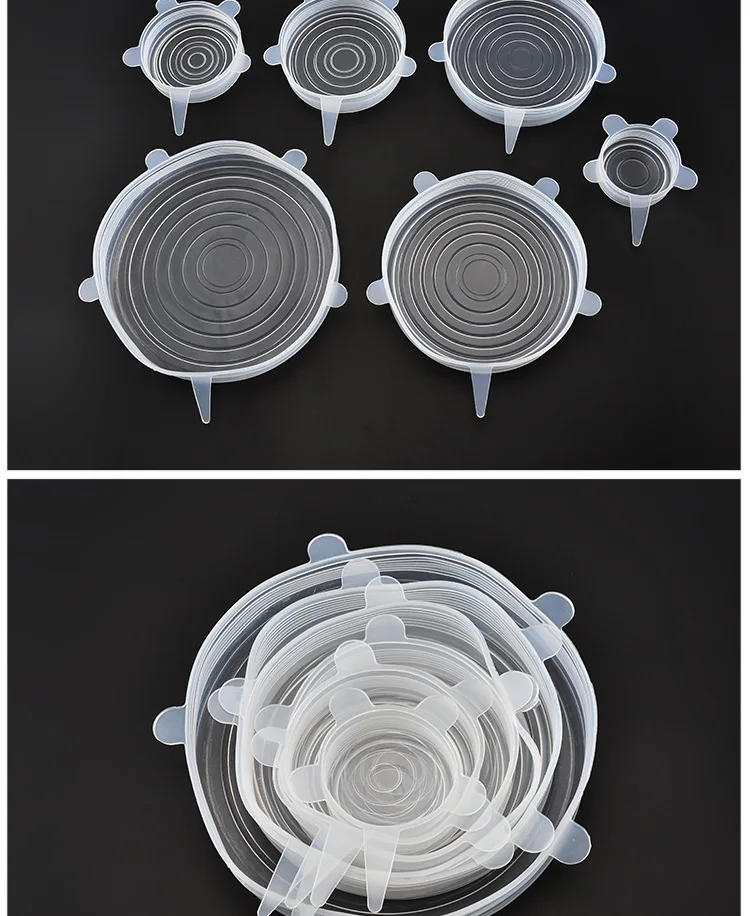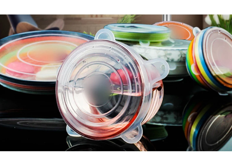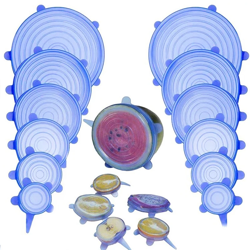 Самые дешевые пищевые силиконовые крышки 6 шт.компл. прочная многоразовая Крышка для хранения пищи, жаропрочная, подходит для всех размеров и форм контейнеров