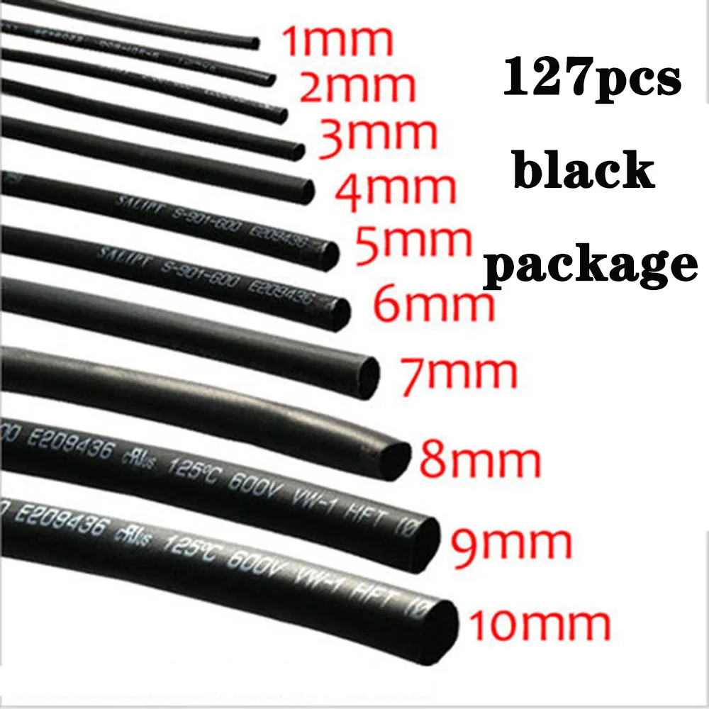 Термоусадочные трубки 127 шт., полезные электрические трубки, Усадочные трубки, черный ассортимент 2:1, комплект автомобильных кабелей, обмотки проводов