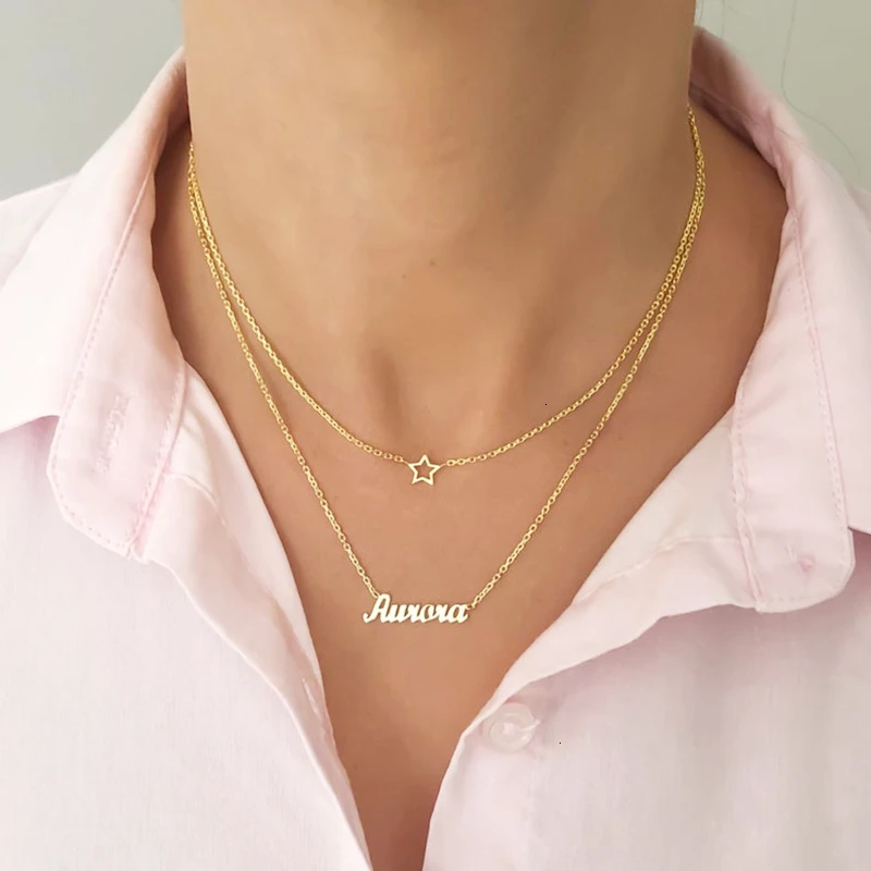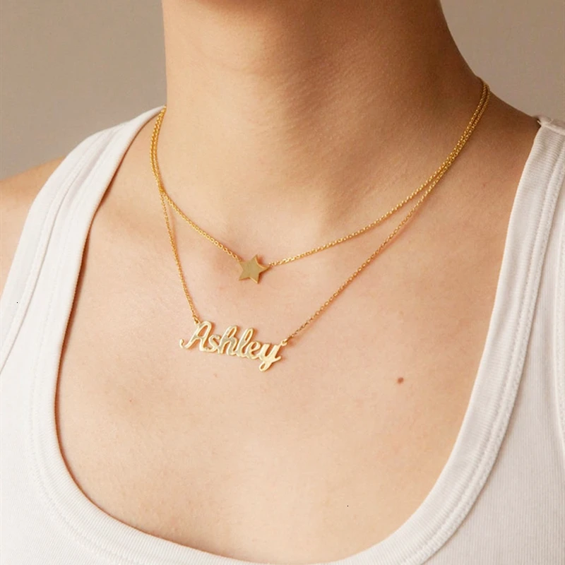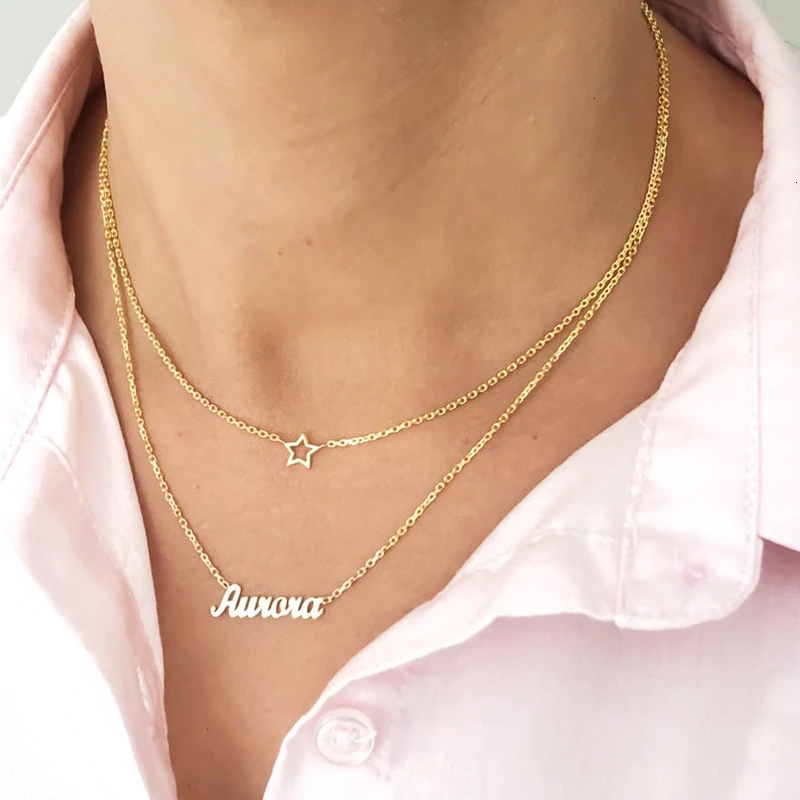 Двухслойное ожерелье с именем для женщин, модные украшения, индивидуальное подвесное ожерелье г., добавьте луну, корону, цветок, бабочку