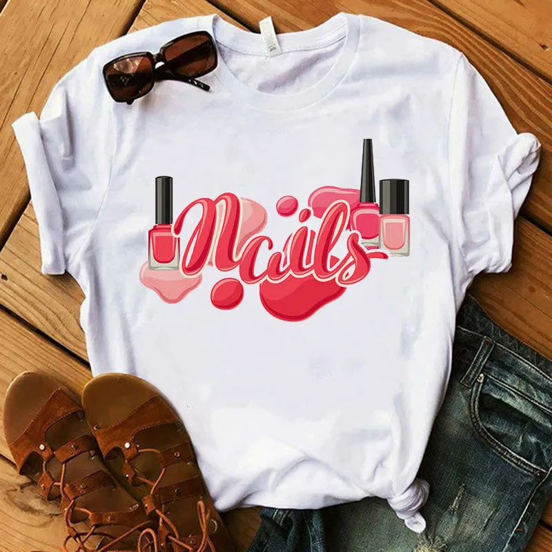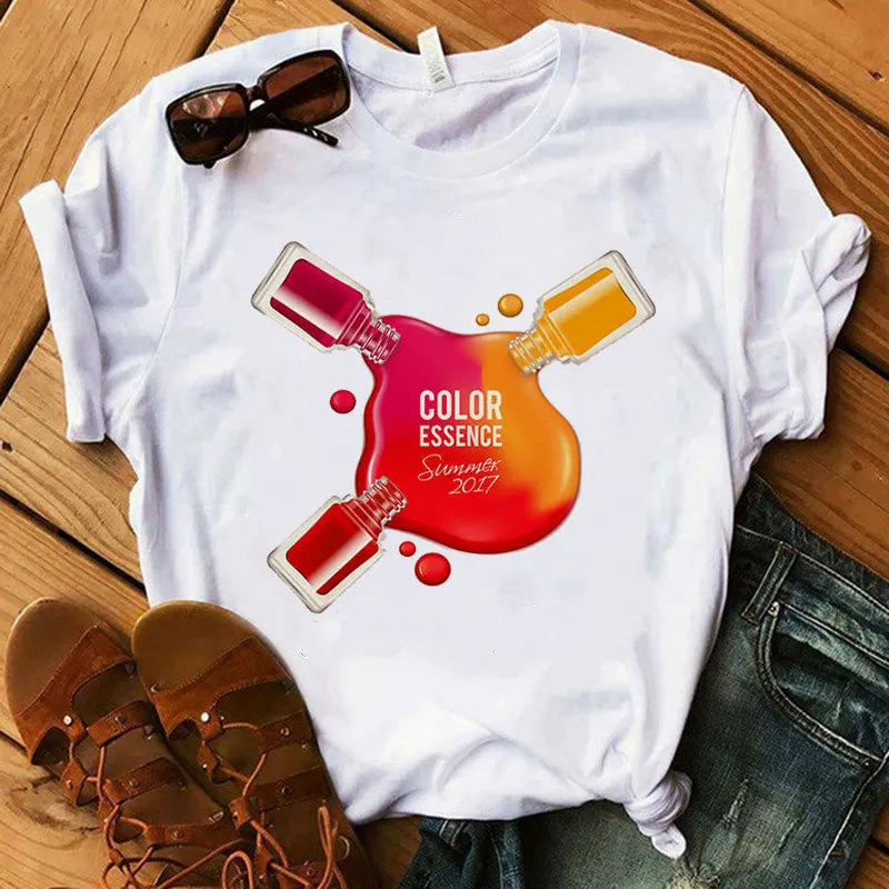 Женская футболка с принтом лака для ногтей Harajuku, летние топы с коротким рукавом и футболки, модная повседневная футболка, женская одежда, футболки
