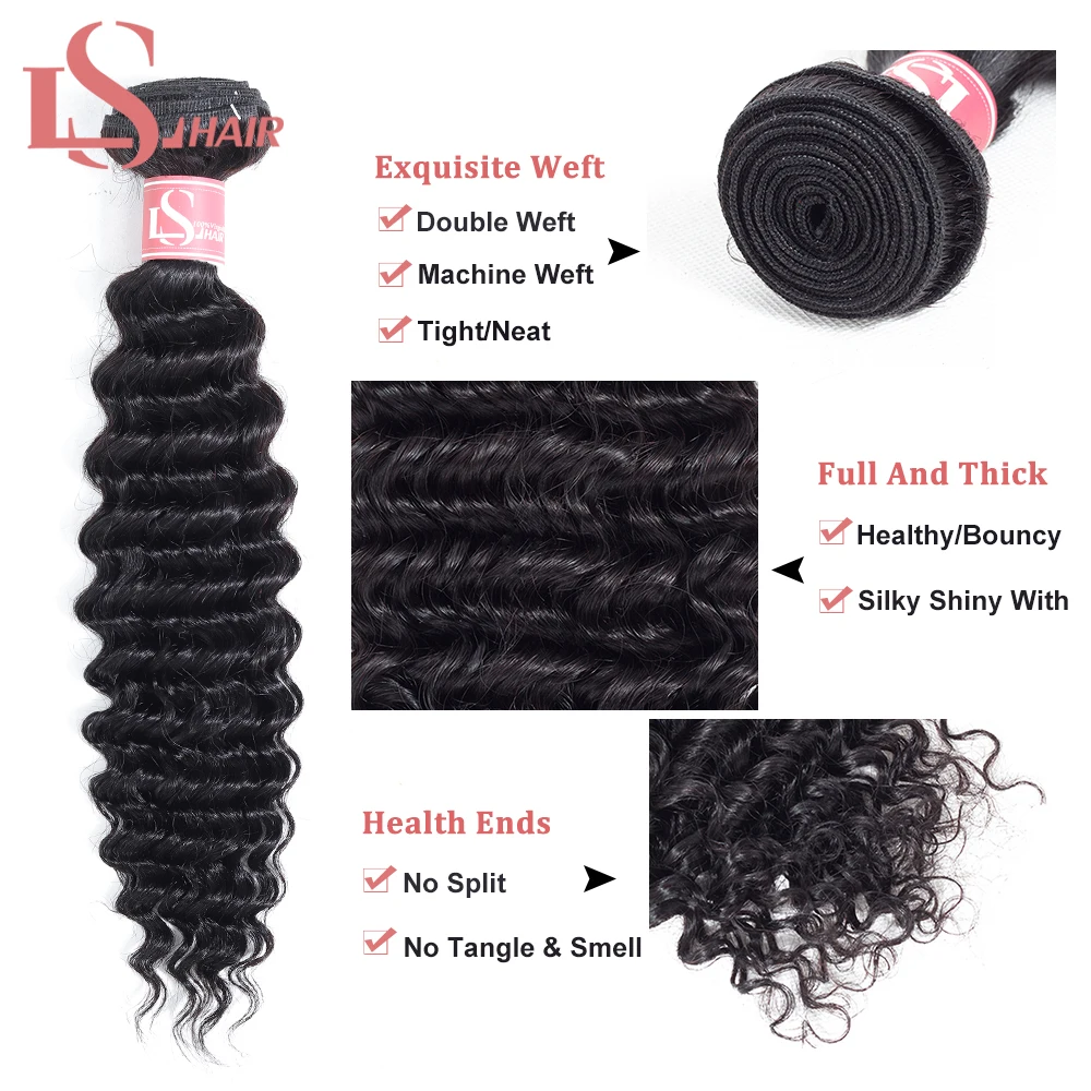 LS волосы глубокая волна индийские волосы 34 пучки с кружевной фронтальной 13x4 предварительно сорванные remy человеческие волосы для наращивания 8-26 дюймов
