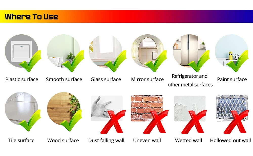 1. Убедитесь, что поверхность, которую нужно прикрепить, является гладкой поверхностью и что есть конвекции, сотканы и морщины. Не прилипайте.