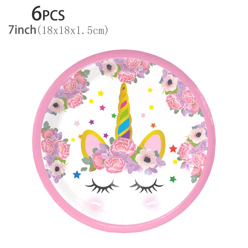 Одноразовая посуда для детей, украшение для дня рождения, с единорогом, тарелки, салфетки, воздушные шары, товары для вечеринок