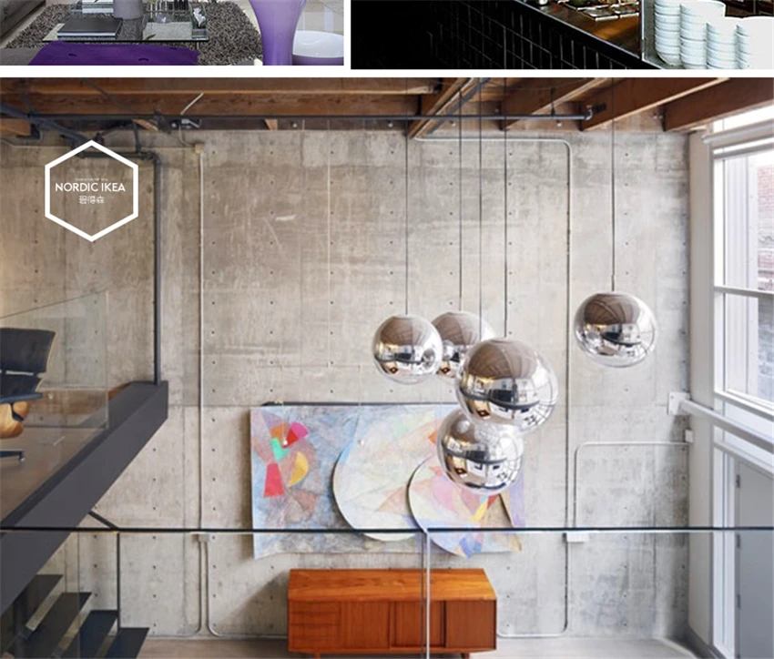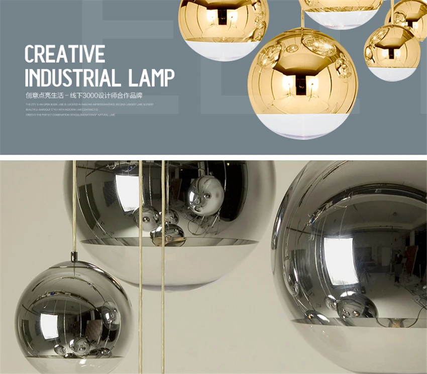 Скандинавское стекло, зеркальный шар, люстра, освещение, золотосере...
