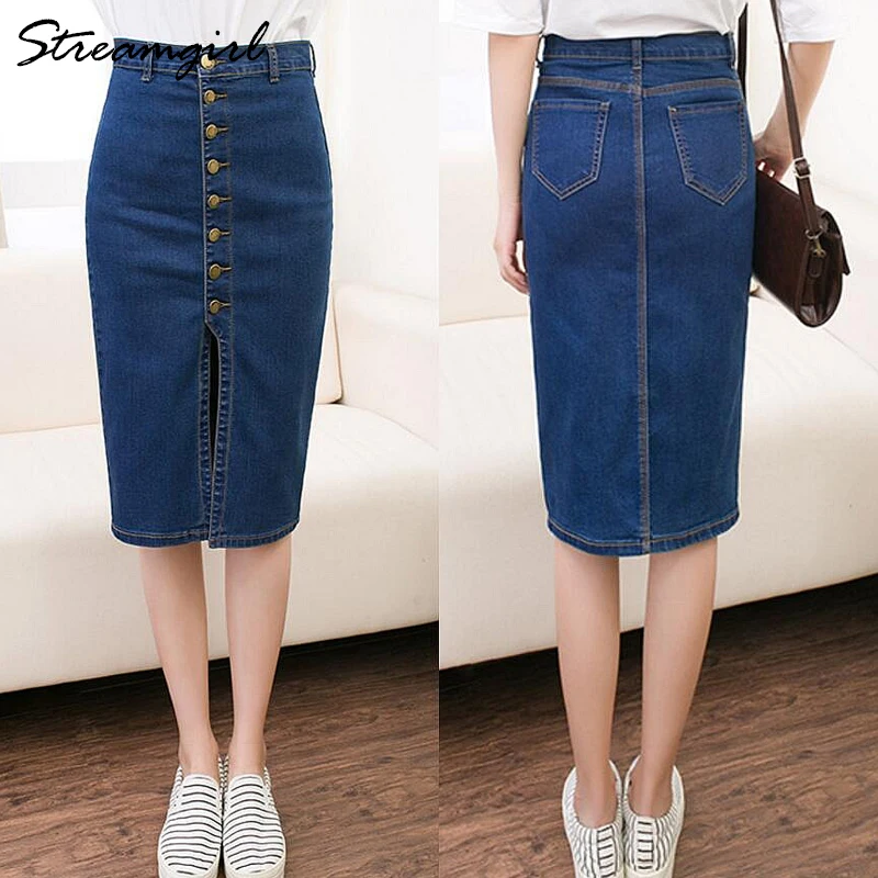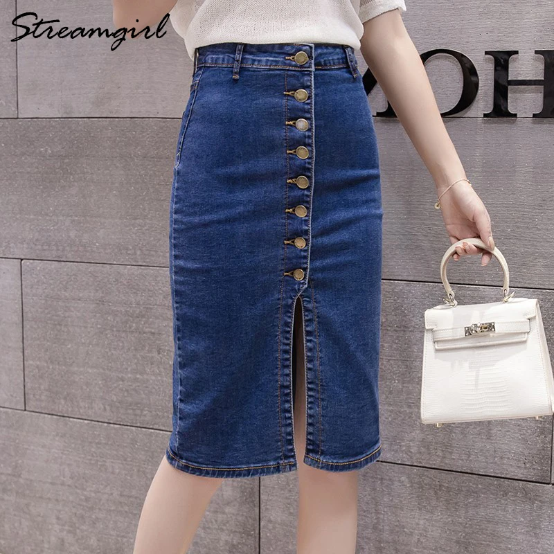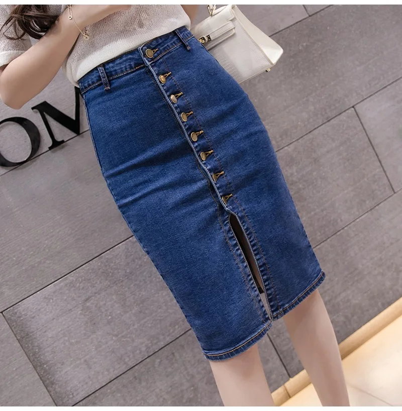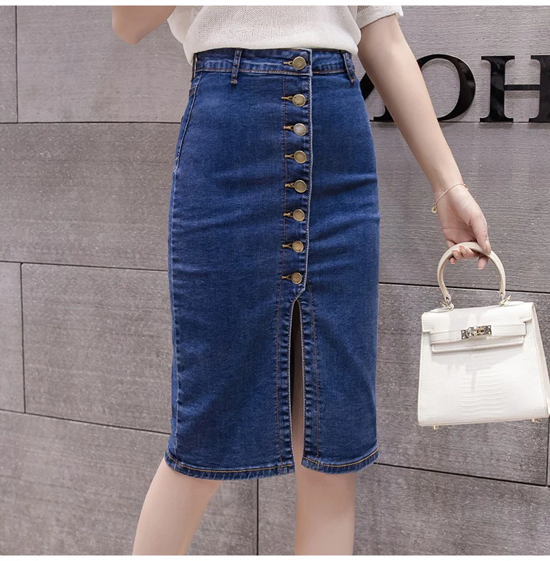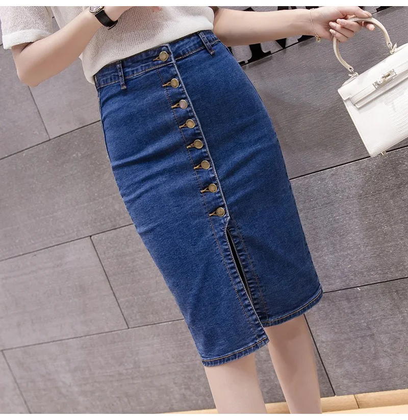 Юбка-карандаш Женская джинсовая средней длины, юбка-карандаш из денима с завышенной талией, до колен, на пуговицах, большие размеры, лето 2020
