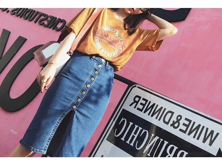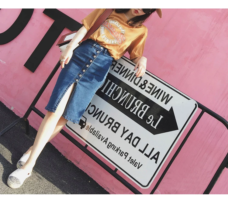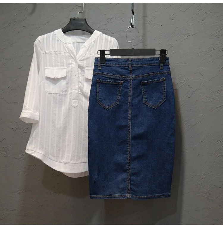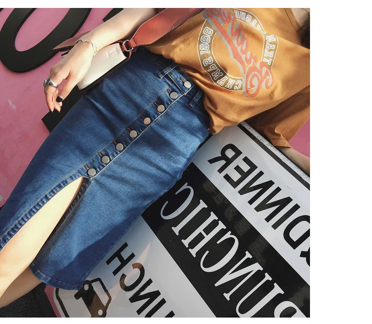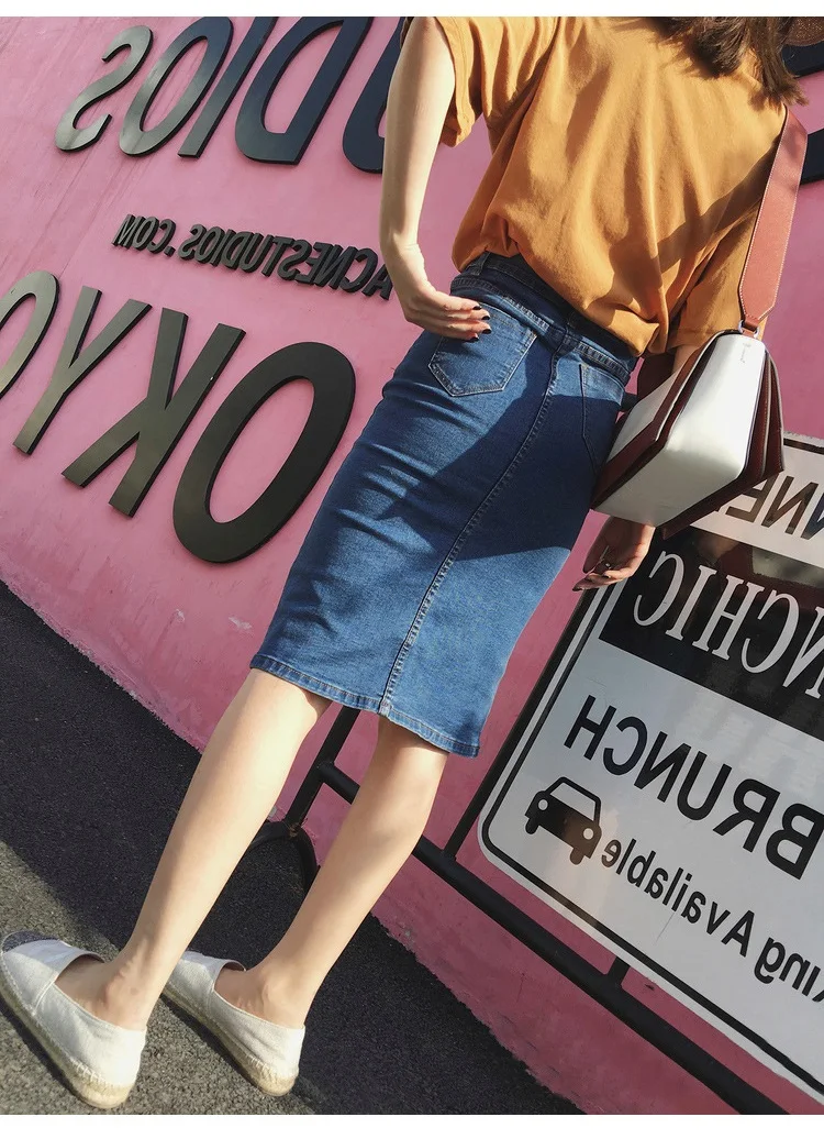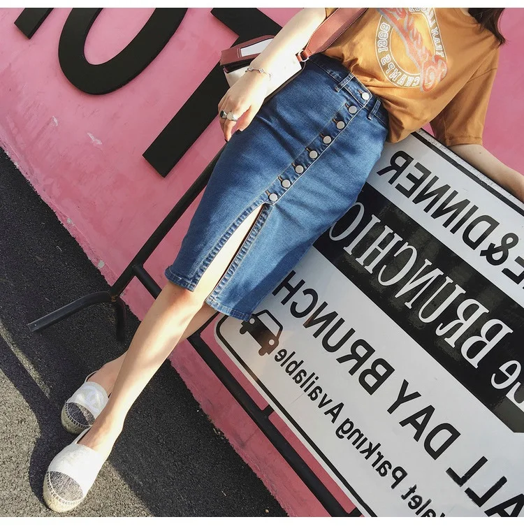 Юбка-карандаш Женская джинсовая средней длины, юбка-карандаш из денима с завышенной талией, до колен, на пуговицах, большие размеры, лето 2020