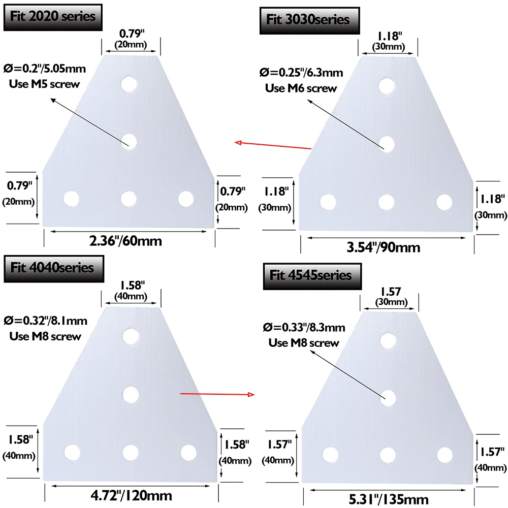 3D-принтер 202030304040, 90 градусов, L-образный, с 5 отверстиями, ...