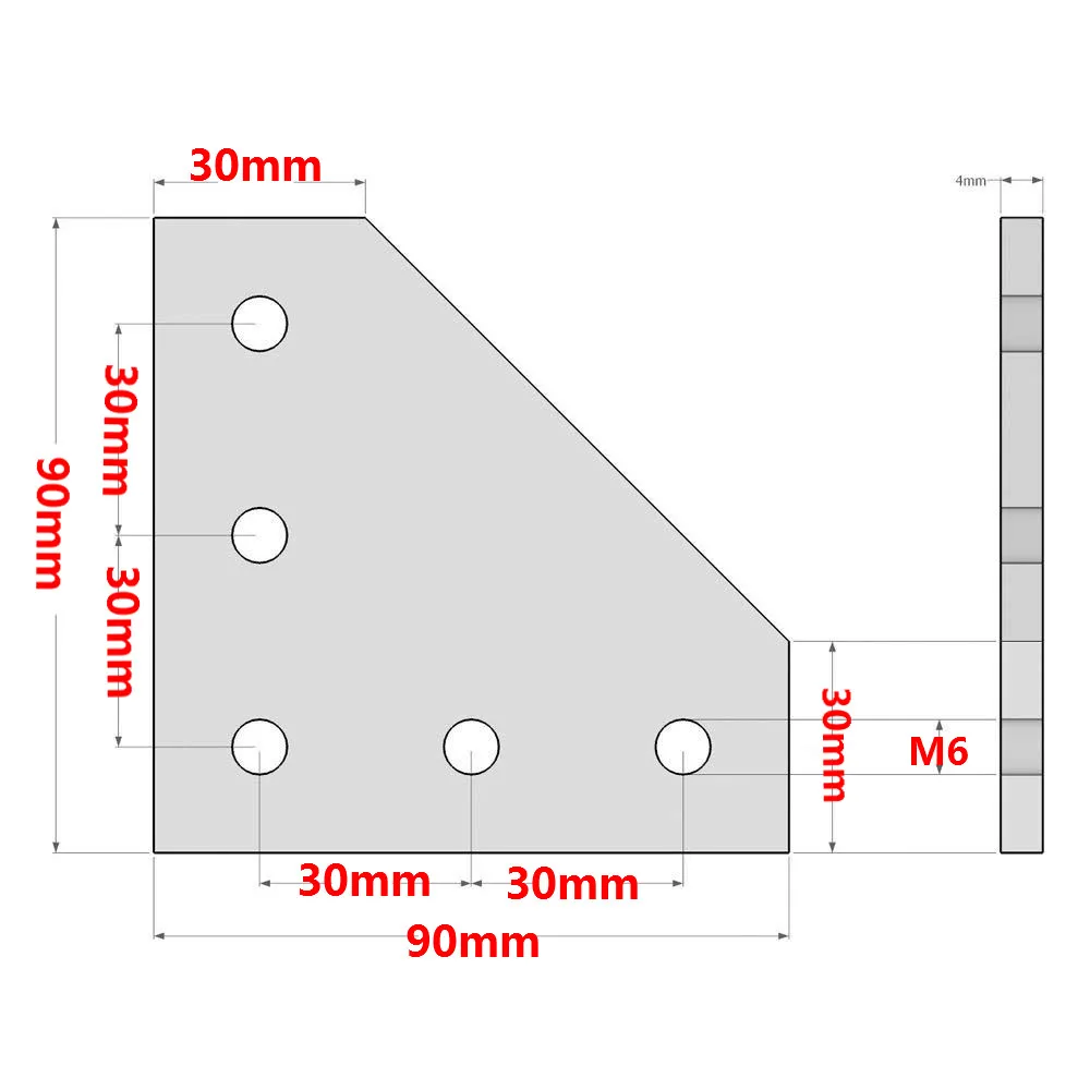 3D-принтер 2 шт.лот, 90 градусов, 60x60x4 мм, тип L с 5 серебряными...