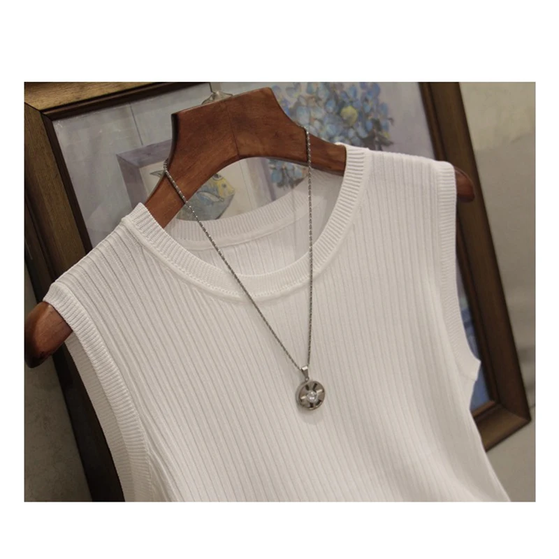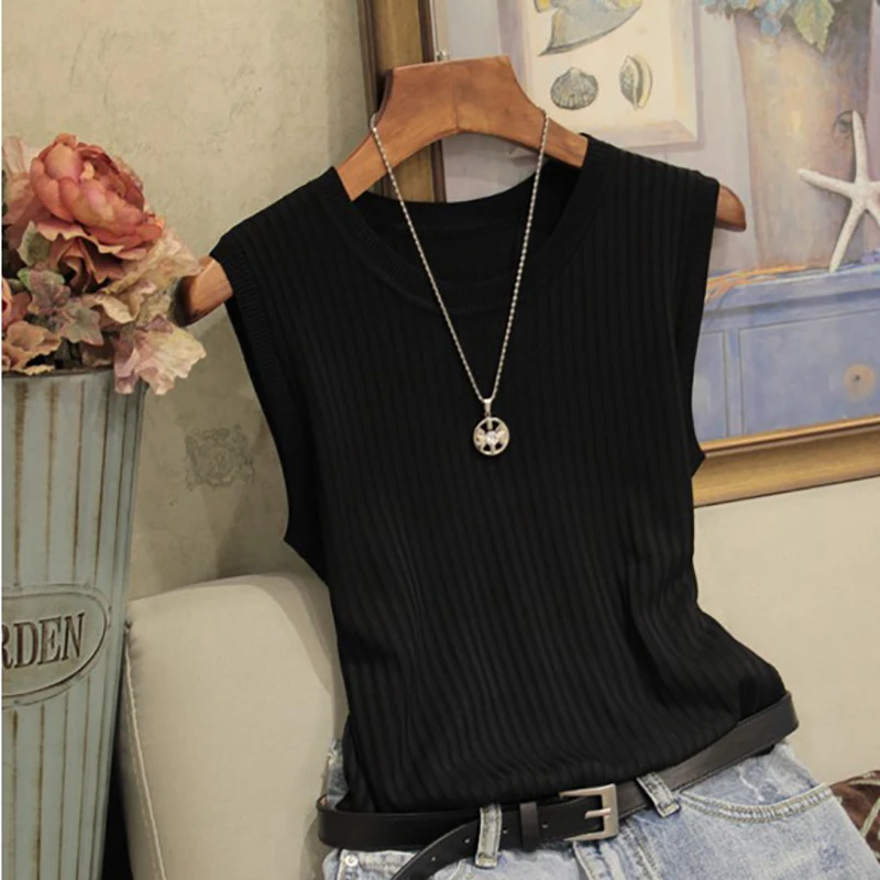 Топы в полоску, однотонная тонкая трикотажная майка, женская одежда 2022, Модная белая, Черная Женская Повседневная жилетка, блузка, женская одежда