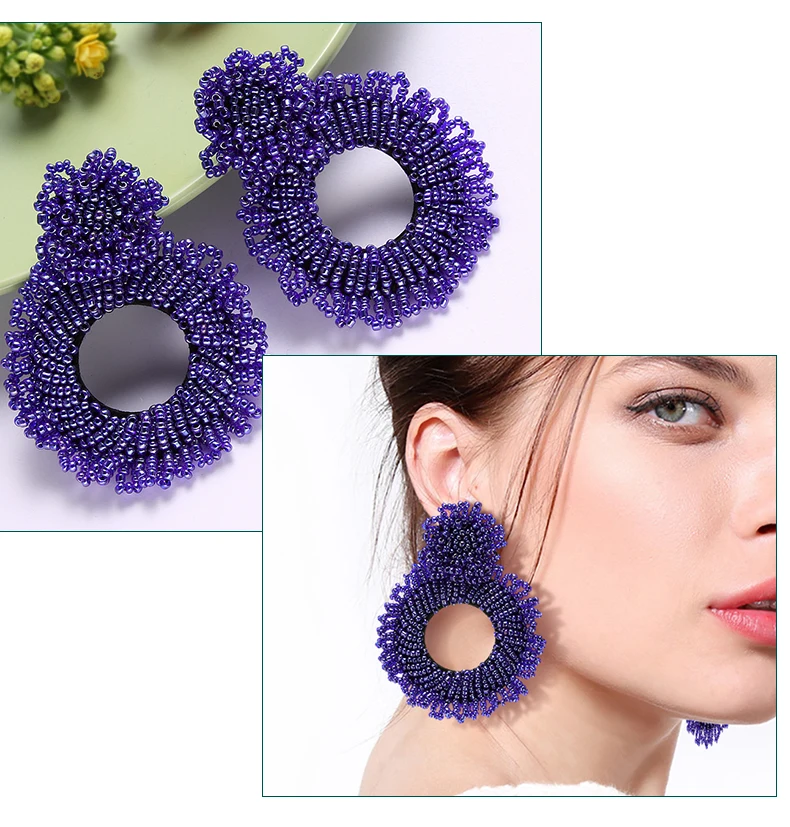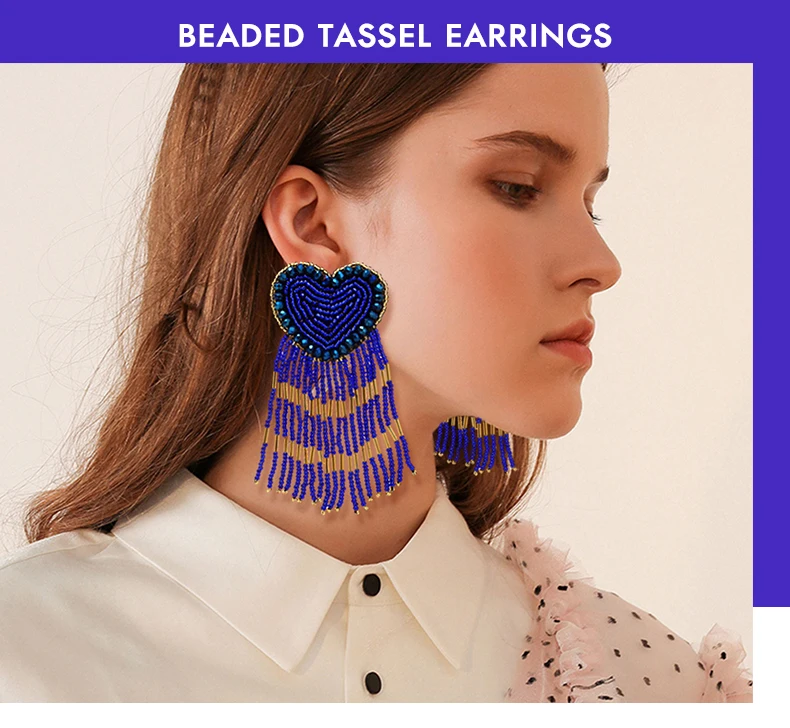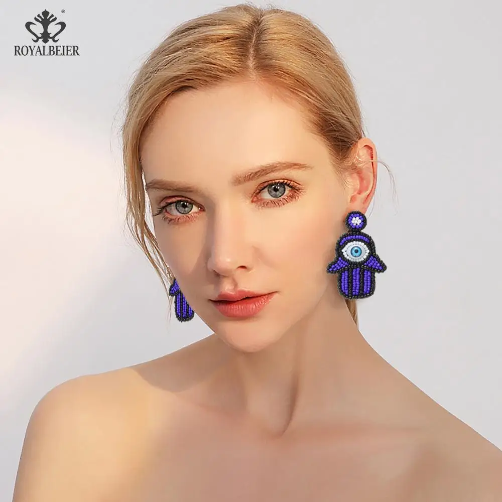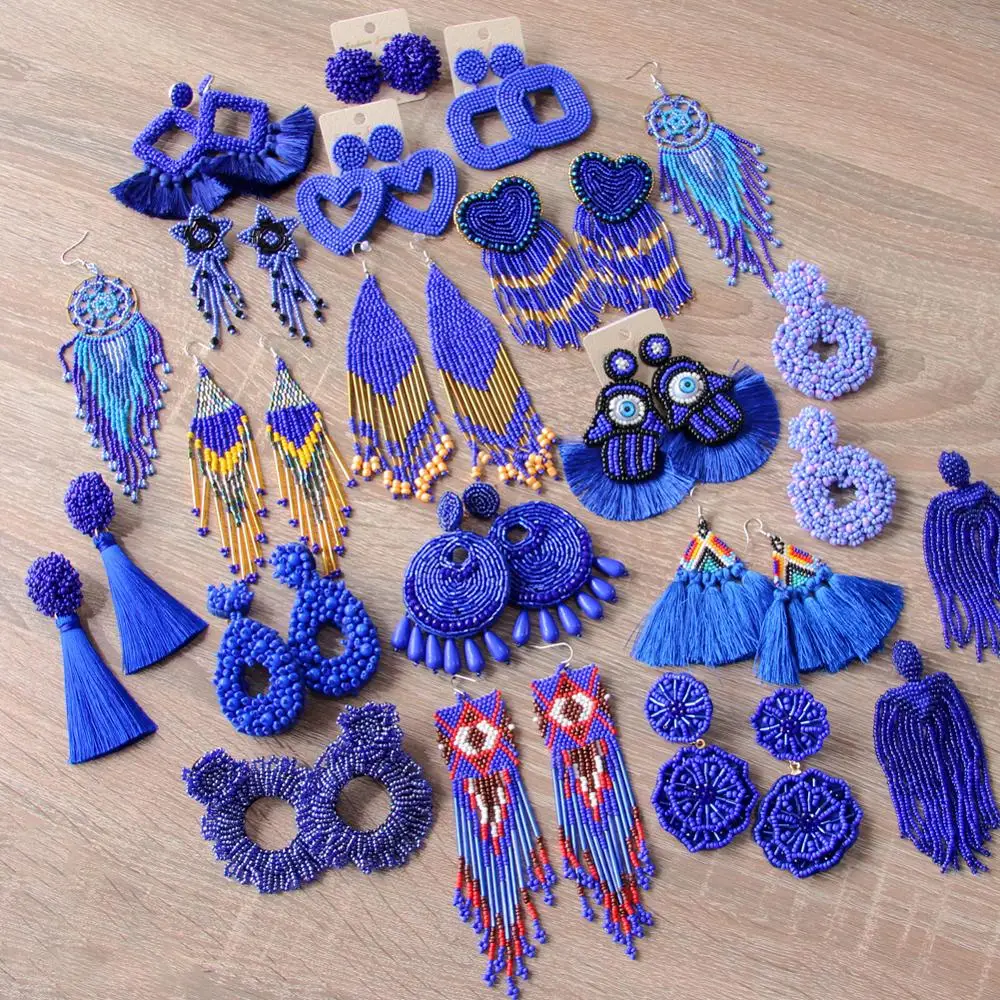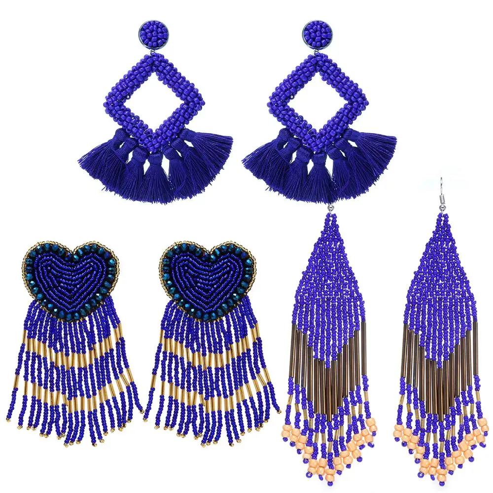 Серьги ROYALBEIER женские, с голубыми бусинами, ручной работы, серьги с бахромой бохо
