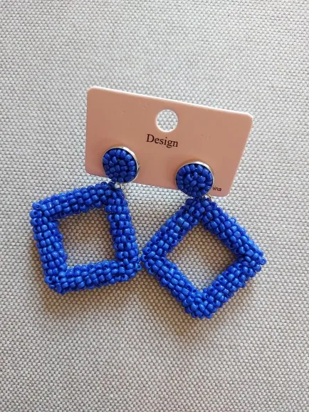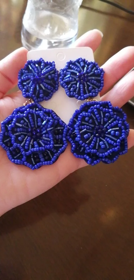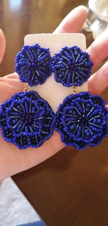 Очень милые серьги. Точно такой же цвет на фото. На фотографиях, которые я сделал, они выглядят светлее в цвете, но они действительно темно-Королевский синий. Прибыла в Нидерланды в течение 2 недель.