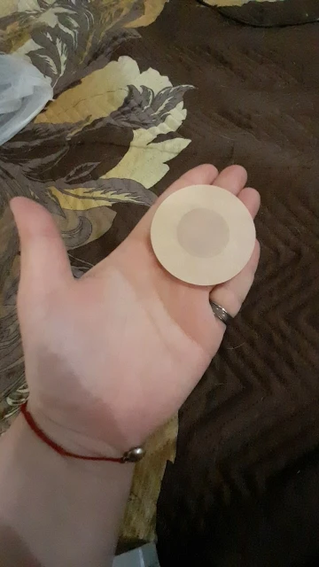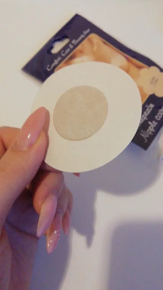 скрывает сосок полностью. держится крепко, даже больно отодрать. немного есть раздражение от клея, надесь не будет аллергии