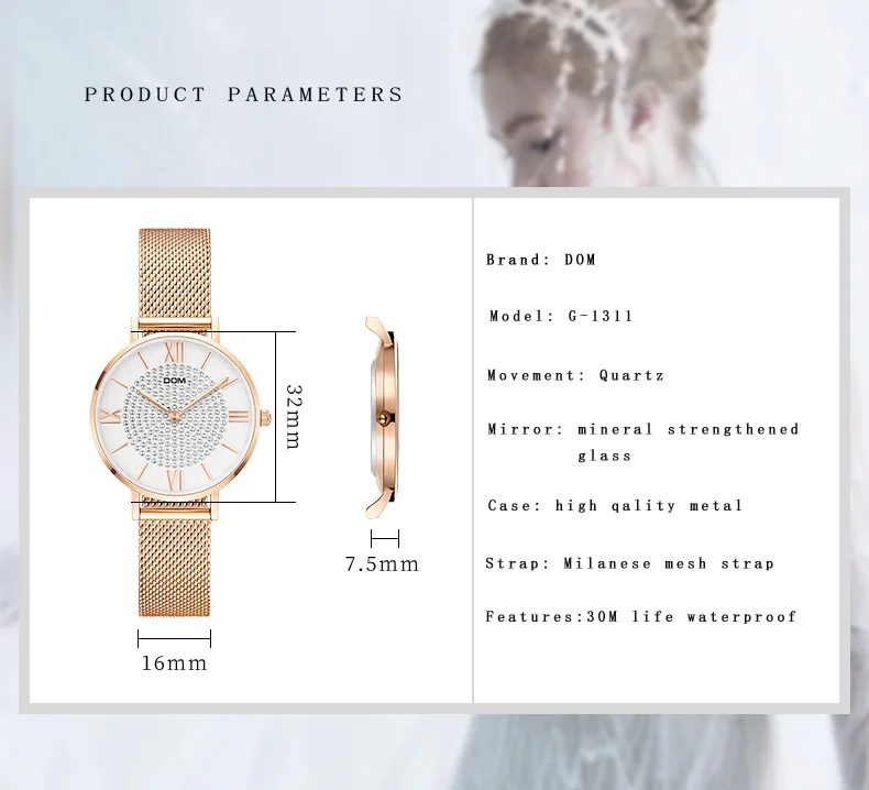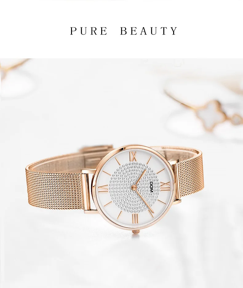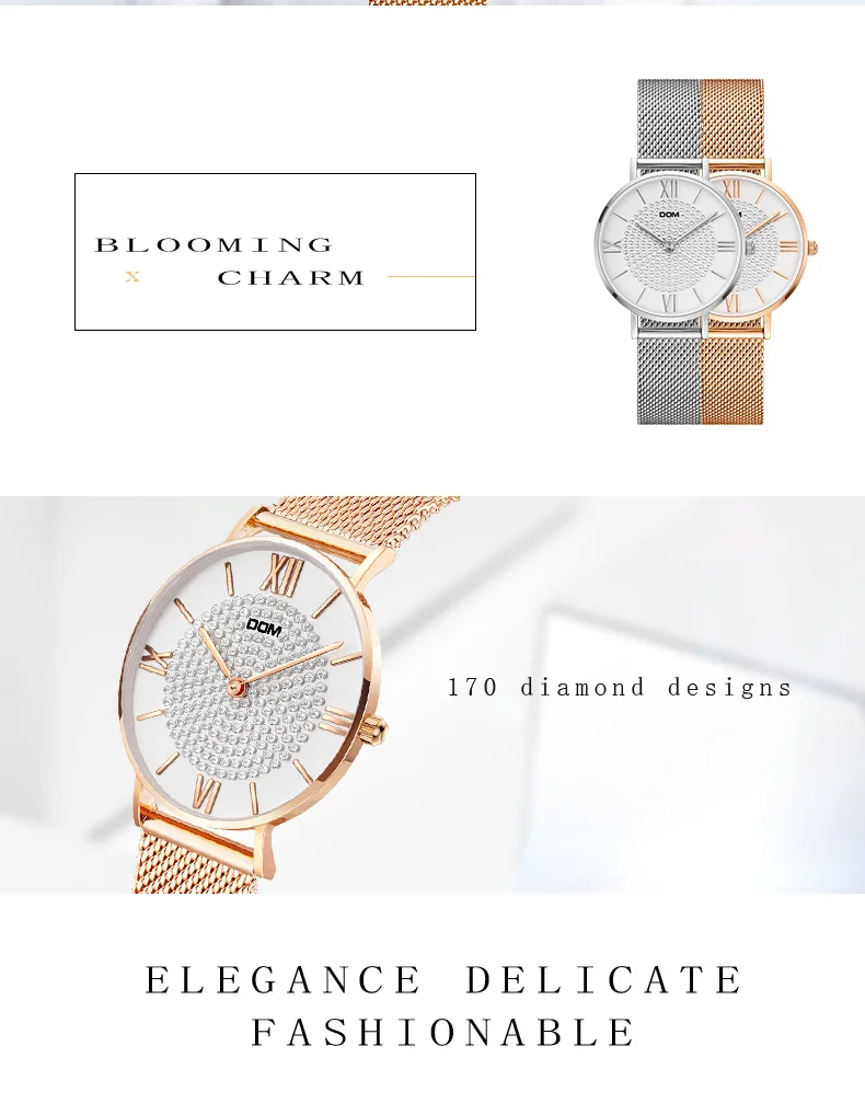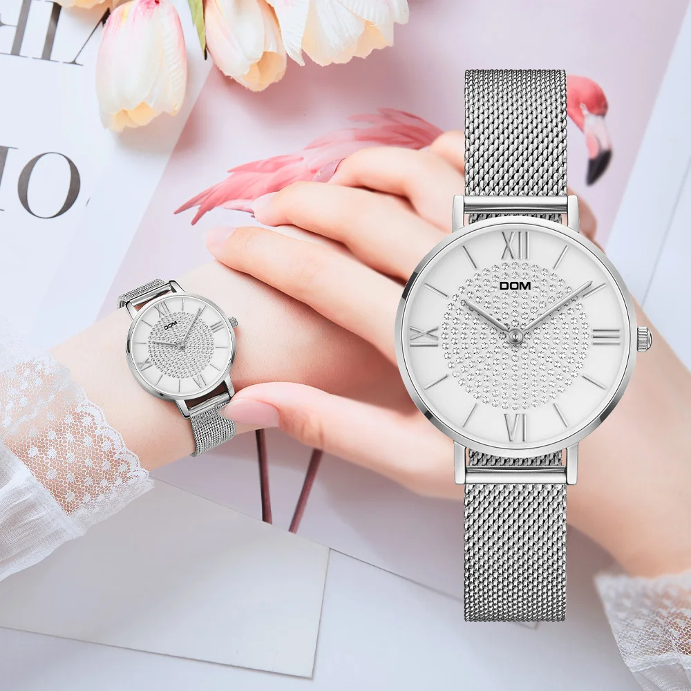 DOM Роскошные модные женские часы, женские часы из нержавеющей стал...