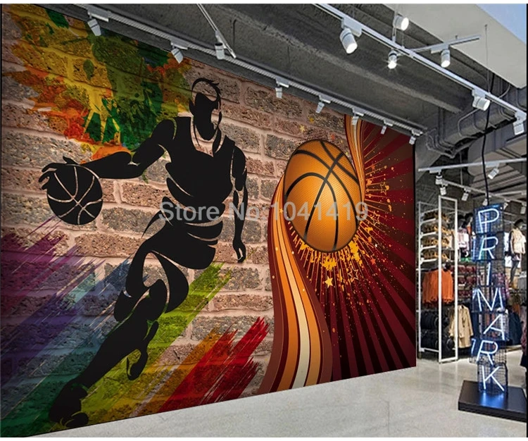 Настенные 3D обои любого размера на заказ, креативный фон с рисунком баскетбольной кирпичной стены, Фреска для ресторана, кафе, бара, декор для стен