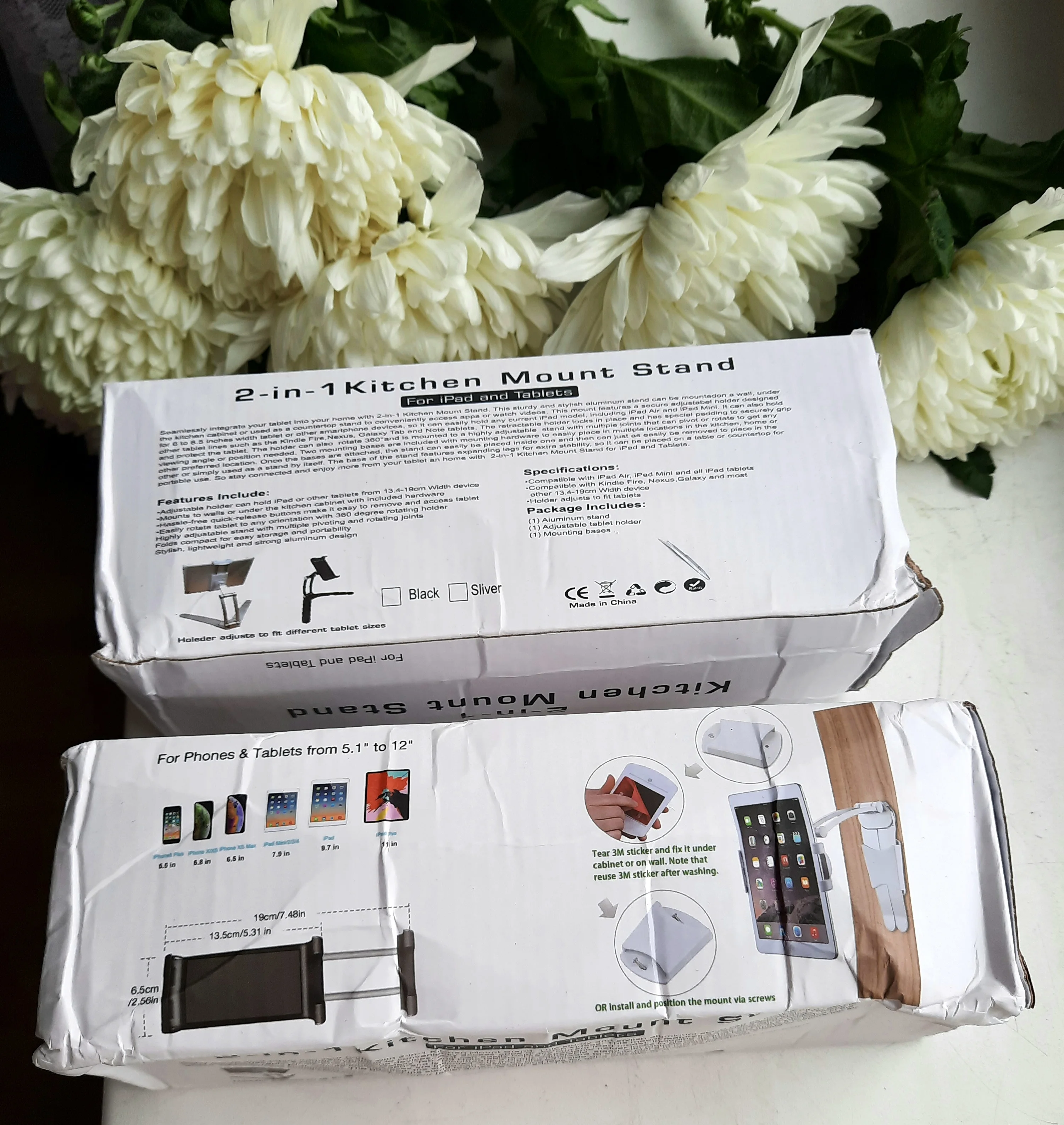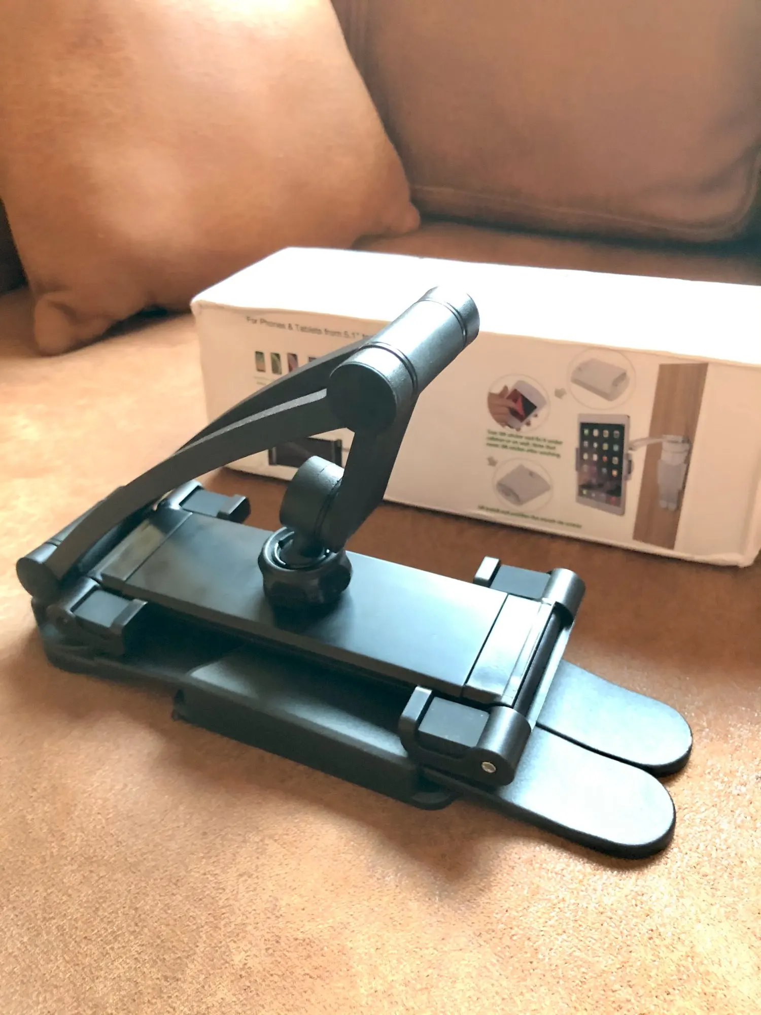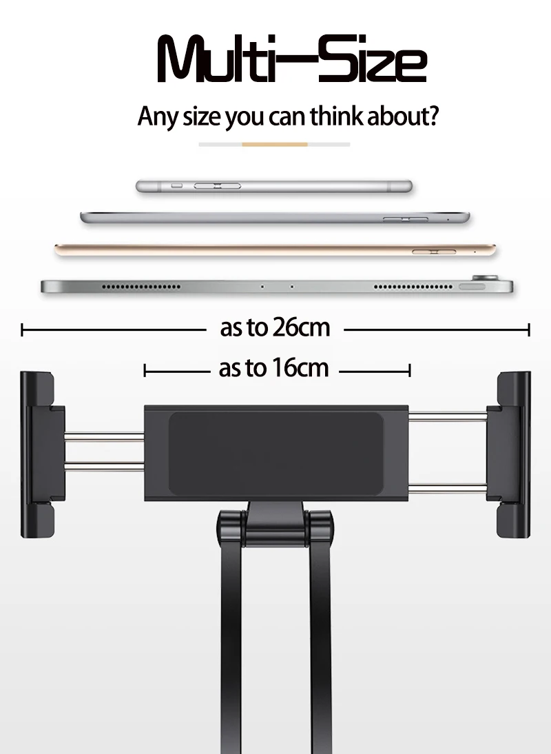 Великолепный держатель! Тугой, тяжёленький, очень хорошего качества. Телефон Самсунг держит без проблем. На коробке указаны размеры от 5,1 до12 дюймов. Многофункциональный. Есть инструкция на английском языке. Доставка в Москву 17 дней. Купила 2 штуки себе и в подарок. Спасибо продавцу