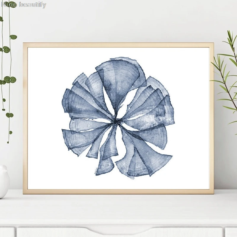 Картина на холсте с изображением веера из синего кораллового моря, плакаты и принты, современное художественное оформление акварелью в стиле хамптона, прибрежные картины, домашнее настенное украшение