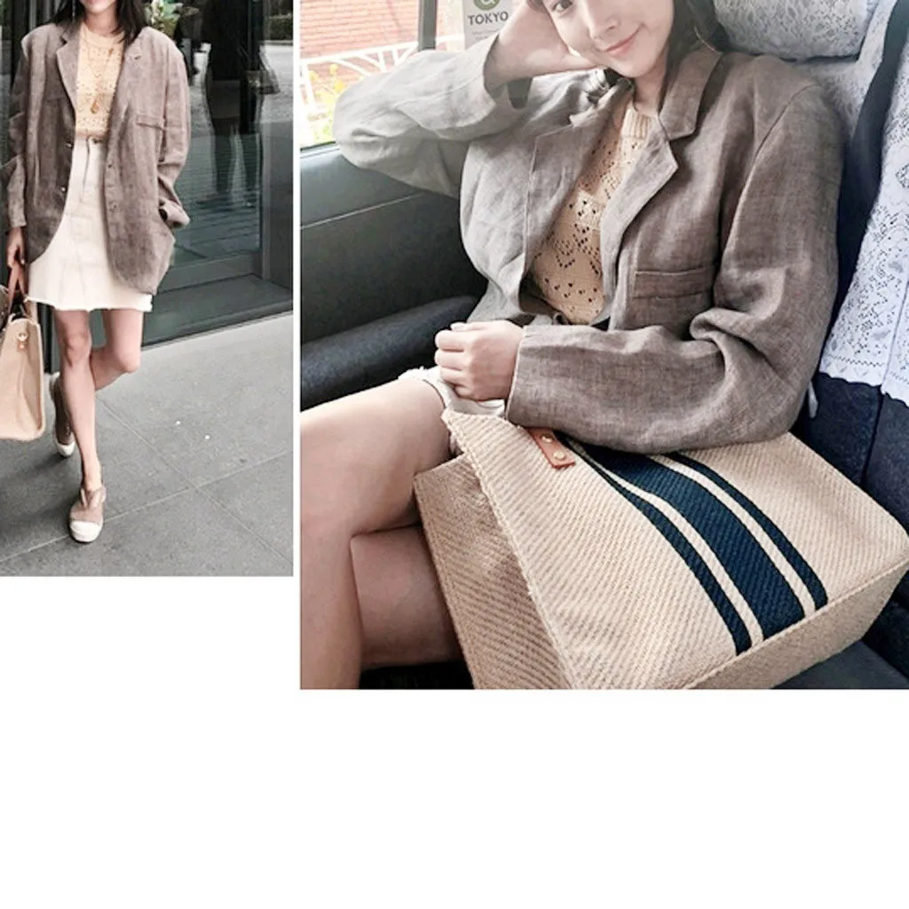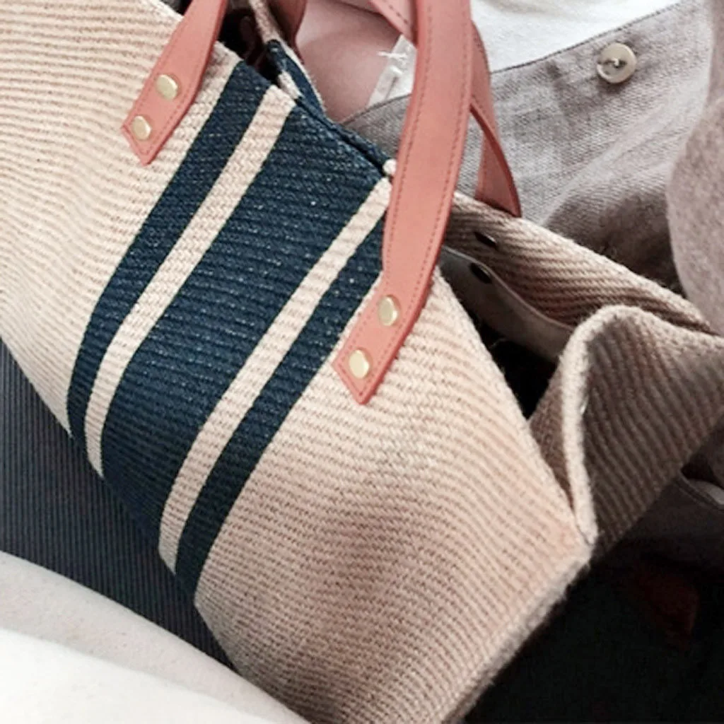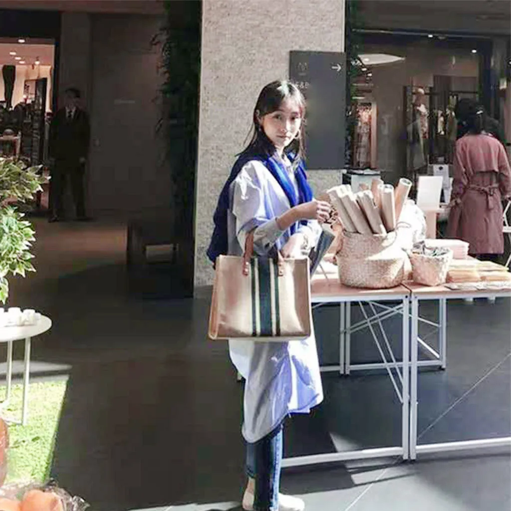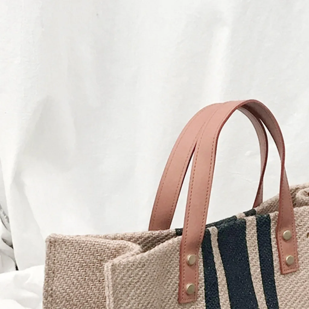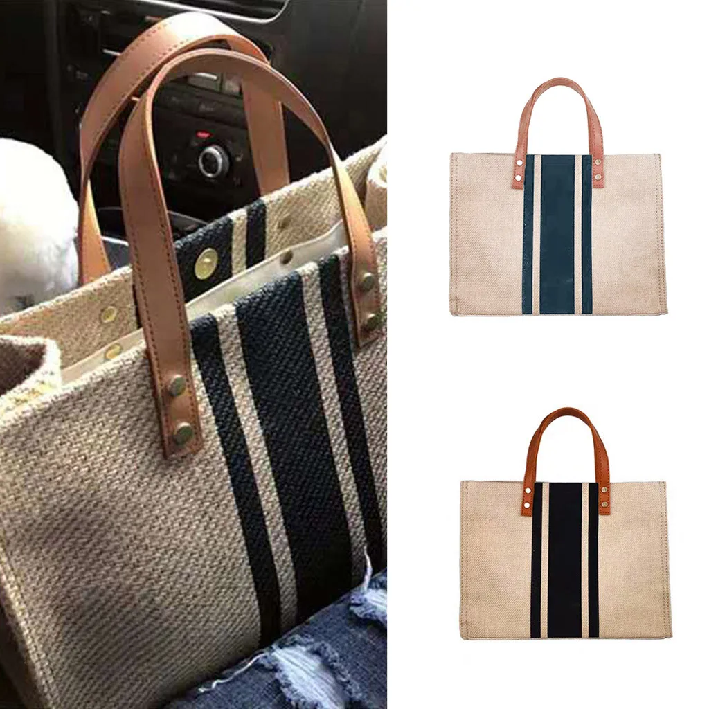 Портфель женский портативный на одно плечо, холщовая большая сумка-мессенджер в полоску, льняной саквояж на плечо, сумка женская