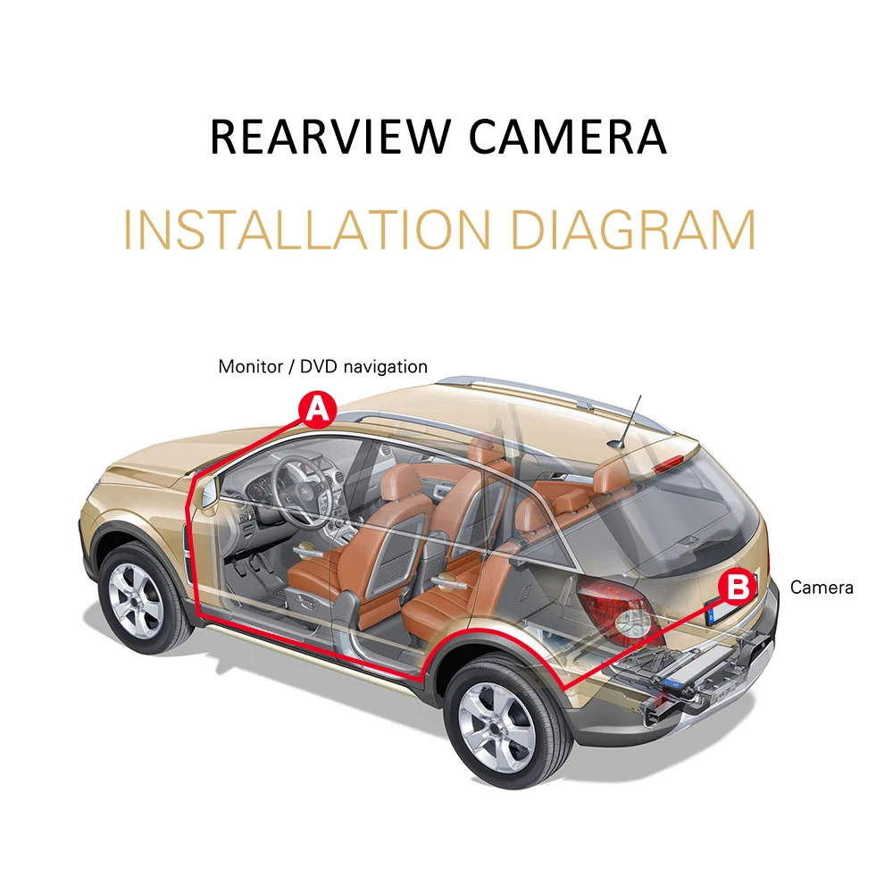 Эту камеру можно установить на задней части ручки и номерного знака. Подключите видео кабель к автомобильному экрану, подключите кабель питания к Автомобильный задний фонарь питания.