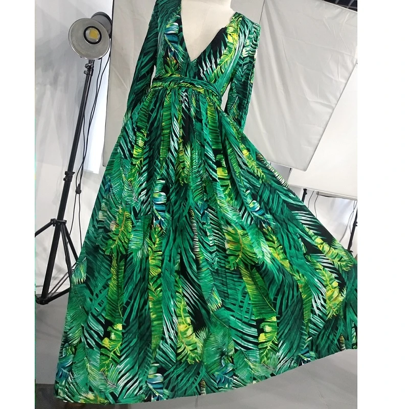 Зеленый принт тропических листьев Летняя Пляжная туника с длинными ...