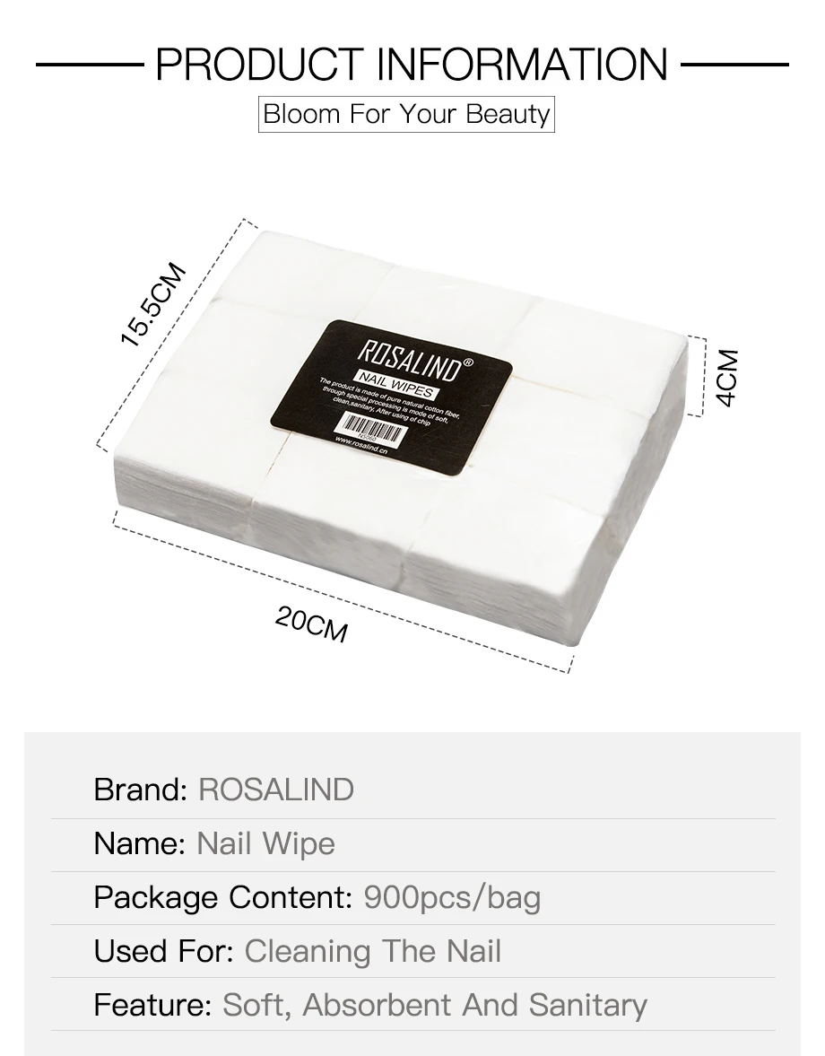 Безворсовые салфетки для снятия лака для ногтей ROSALIND 900 шт.лот, обезжиривающие салфетки для ногтей, хлопковые салфетки для дизайна ногтей, инструмент для маникюра, строгальный станок для снятия лака