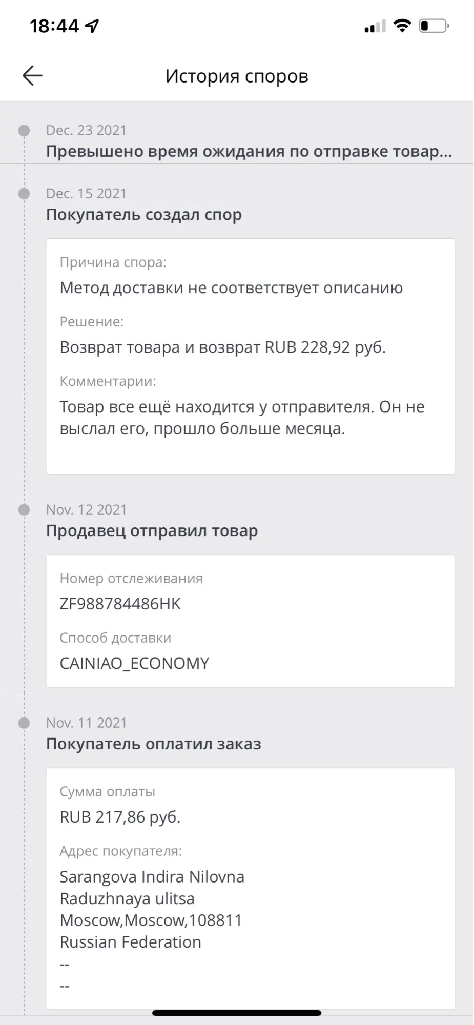 Страна: IE Color: A18 Доставка: Cainiao Super Economy 26.12.2021